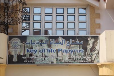 エジプトのお土産にパピルスを考えてらっしゃる方にお勧めします。「キーオブライフ」という専門店で日本語のわかる店員がいます。ロス五輪柔道決勝で山下選手と戦ったラシュワン選手経営の店です。一枚25ドルくらいからあります。紙一枚にとお考えの方にはお勧めしませんが、折角の記念に確かな物をとお考えの方は是非立ち寄ってみてください。