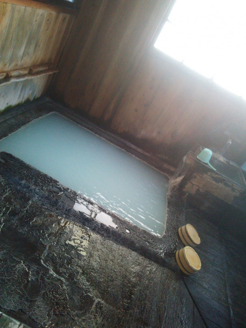 女性の内風呂から混浴に入るような形ですが、お湯が乳白色の為さほど気になりませんでした。