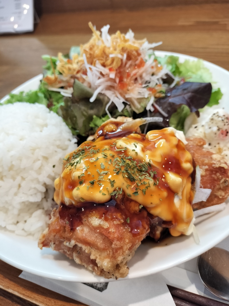 旅行中お昼になったのでマップで探して行ってみた店です。対面にある駐車場がみるみるいっぱいになり、お店の前に行列ができました。チキン南蛮を頼みましたがタルタルソースの美味しいこと!サラダもたっぷりついてgood!コーヒーもものすごく美味しかった!