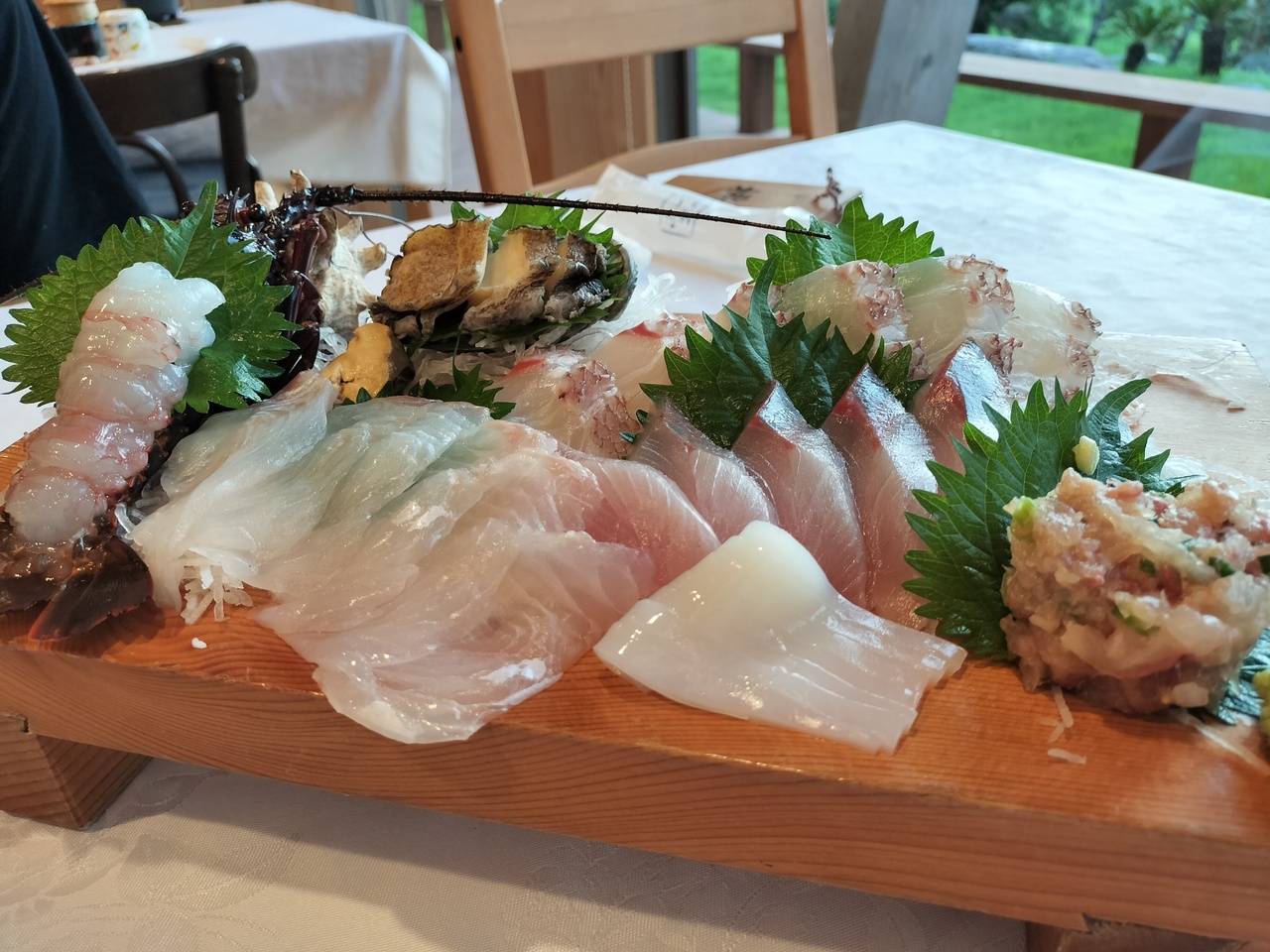 バイキングなのでやや心配しましたが、お寿司もカニもステーキもすごく美味しかったです。最初にテーブルに舟盛りを持ってきてくれましたが食べきれずに残念でした。部屋とお風呂からは大島と富士山がバッチリ見えてリゾート感満載の宿でした。