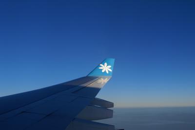 窓の外を見てみると、ウィングレットにティアレの花が。