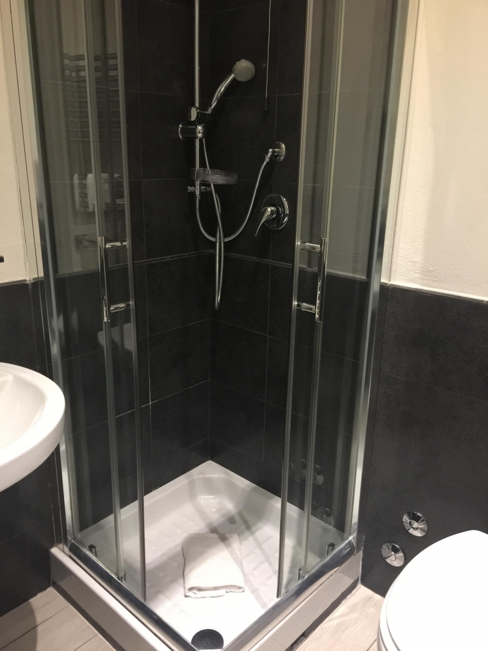 テルミニ駅にも共和国広場にも近く、立地は申し分ないところでした。前日から荷物を預かってほしいとあらかじめメールでお願いしていたら、把握してますよ〜と快く対応してくれました。また、途中でカードキーを落としてしまった時も、無料で新しいものを用意してくれました。朝食は7時から。スクランブルエッグとベーコン、チーズ、サラダとスイーツくらいですが、質はいいものを置いてる気がします。冷蔵庫に水500ml(ガスなし)と缶のコーラがフリーで2泊ともついてたのも嬉しかったです。使い捨てスリッパやテッシュが置いてあるのもイタリアのほかのホテルではなかった嬉しいサービスでした。シャワーの水量は申し分ないのですが、トイレの水量が弱くて流すのに何セットかかかりました。この時期なのでなんとかなりますが、掛け布団がシーツのみは心もとなかったです。まっ、クローゼットの上に毛布があったのでなんとかなりますけど。