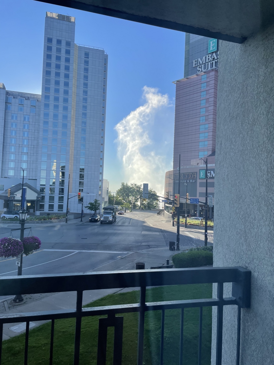 大きなホテルでナイアガラの滝も見える部屋がほとんどですが、現在コロナ禍のため、無料朝食が提供されてなくて、代わりにIHOP 食事券を出しています。でも値段が決まってるし歩いて外まで行かないといけないので、少し不便。またホテルの駐車場(有料)に停めるには、駐車場まで送迎バスを使うので、時間がかかります。余裕をもって行くことの注意が必要です。でも、アーケードも近いし、場所的には便利なところです。