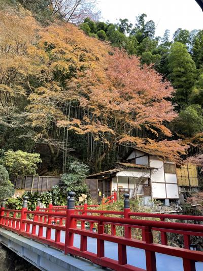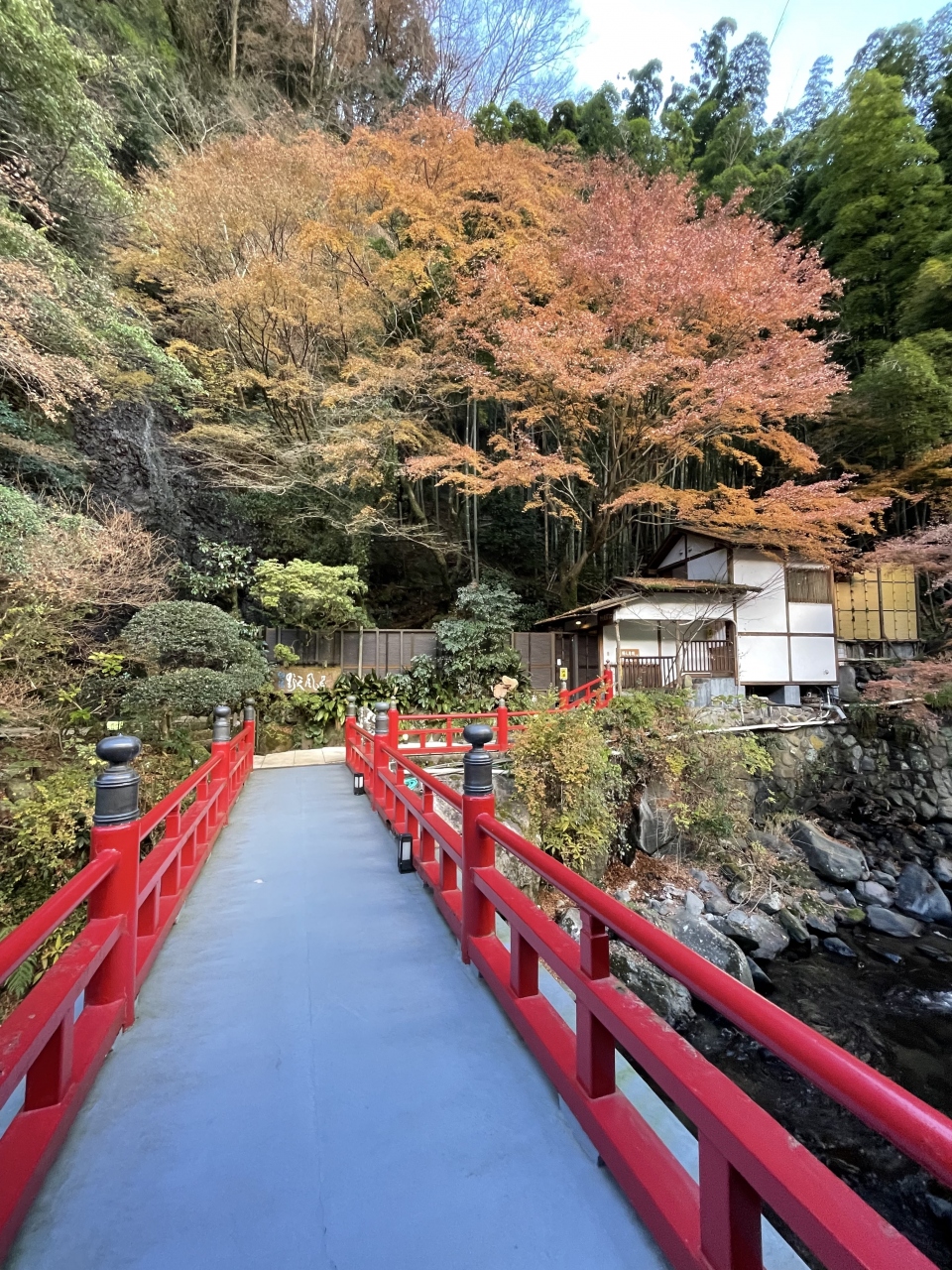 でもこの野天風呂は、川のせせらぎ、滝の落ちる音、竹林に囲まれ、湯気の岩風呂の中、見上げれば、まだ紅葉したもみじの向こうに満月、と言った最高の野天風呂でした。ずっとここで夜空を眺めてお湯に浸かっていたい幻想的な空間でした。