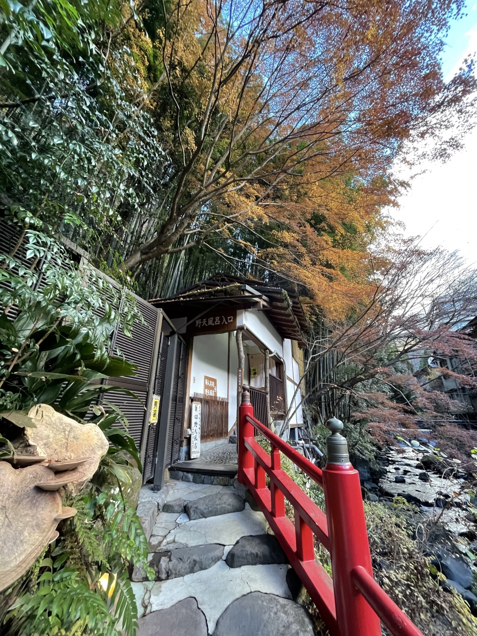 建物が古いので、全体的に寒いです。露天風呂が大浴場からつながってないので、一旦敷地内の外に出て橋を渡って行きます。そこには洗い場はなく、本当に野天の風呂なので、大浴場で洗って内湯に入ってから、また着替えて外に行けなけれならないのが、面倒だし、冬だったので朝晩、浴衣姿で非常に寒かったです。脱衣所も小屋です。