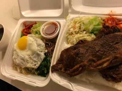 韓国料理のプレートランチ(ディナー)のお店、テイクアウトも外のテーブルでも食べれます。メニューが豊富で、殆どの料理に、4種類の野菜のおかずが選べるのが嬉しいです。滞在中何度も通い、カルビ、ビビンバ、ビーフバーベキュー、チキンカツ、豆腐スープを食べました、どれも美味しいです。ご飯も量が多いです。混んでいる時は15分くらい待ちます。おススメです!