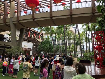 おなじみロイヤルハワイアンセンターの無料クラスは色々ありますが、特にウクレレが大人気でレッスンは12:00からですが、定員が25名なのでその前にインフォメーションオフィスで番号のチケットをもらわないと満員で受けられませんので注意してください。10時にインフォメーションオフィスが開く前にすでにチケットをもらう人が並んでいます。10時にチケットをもらい、10時~11時の無料フラレッスンに参加して、その後フードコートでランチを食べ、12時からのウクレレレッスンに参加する、というコースはいかがでしょうか?