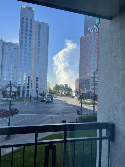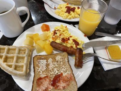 大型のリゾートホテルではないですが、コロナ禍でも朝食のバフェもオープンしており、駐車場も敷地内なので、便利でした。すぐ目の前のヒルトンエンバシーに娘家族は泊まったのですが、逆に大きなホテルなので朝食も中止、駐車場に行くまでは、バスで送迎、という時間のかかるものだったそうです。昼間は観光していますので、値段に見合った十分なホテルでした。ただ少し古く、バスルームのシャワーがテープで止まっていました。