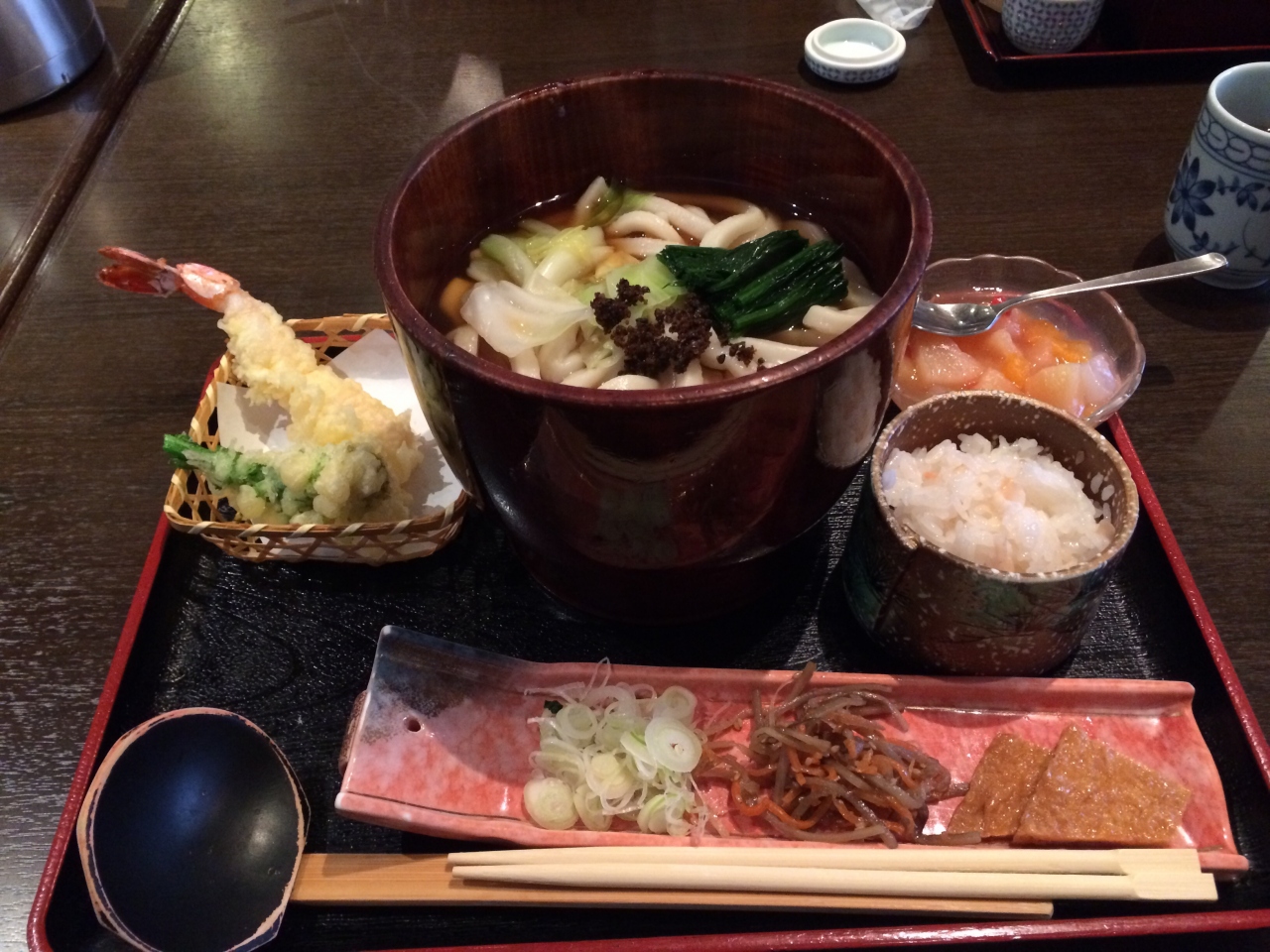 おうどんを入れてある深めのお椀が好きです。うどんの太さにびっくり。