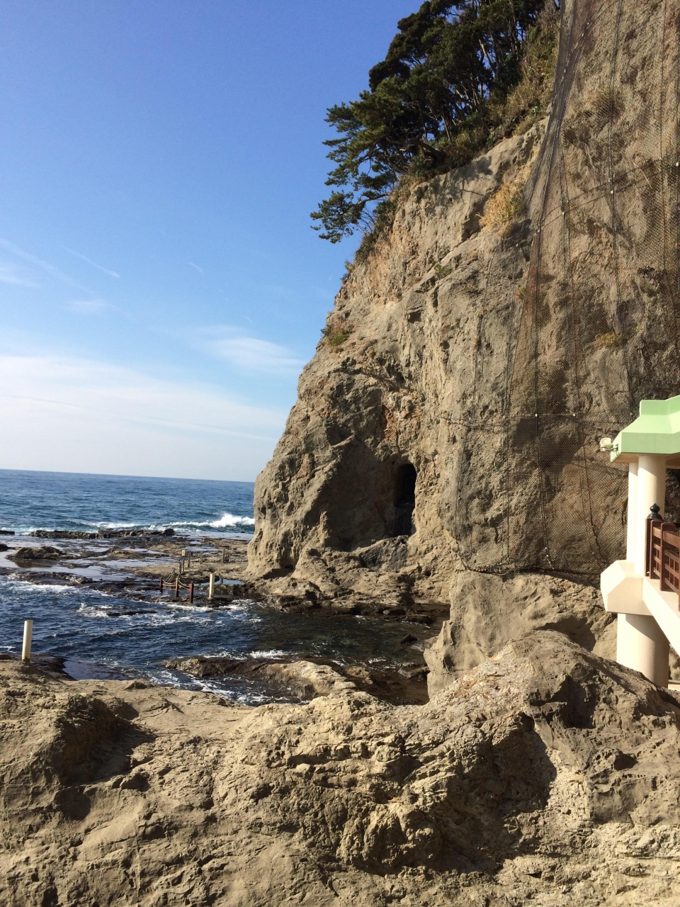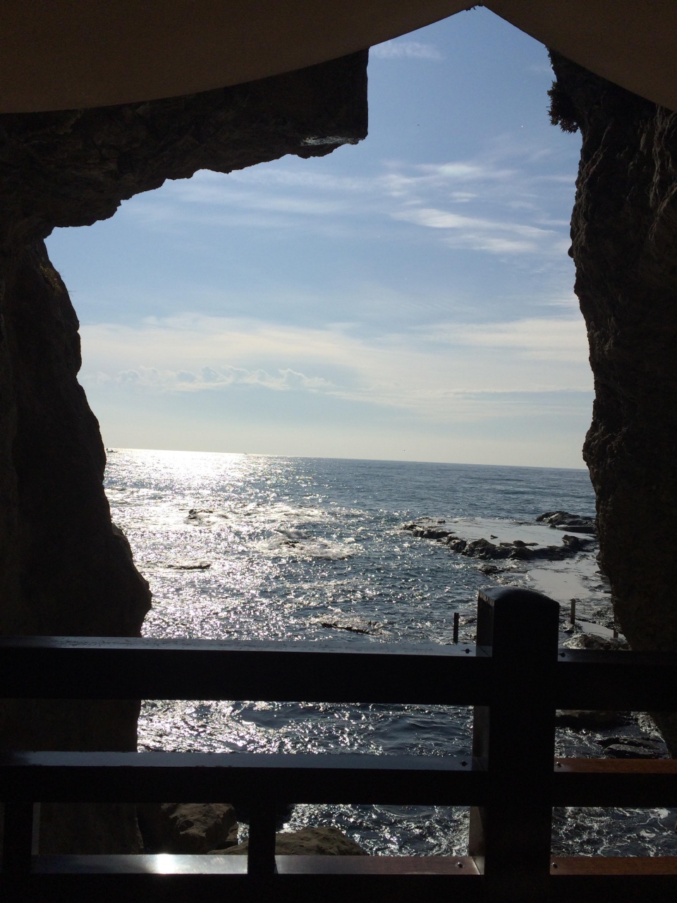 江ノ島の裏側の穴場絶景ポイントです。アクセスとしては江ノ島を登って降りて裏側に出ます。朝早く混まないうちに行ったので、岩屋洞窟の中もまだ混んでなくて良かったですが、洞窟自体は思ったよりも短くて、すぐに見終わってしまいます。ロウソクを貸してくれるので気分アップですが。でも周りの景色が絶景です。午前中でしたので、逆光でしたが、海がキラキラ光ってとても綺麗でした。またそこから富士山も見えて素晴らしかったです。夕陽の沈む時間に行ったらもっと綺麗でしょうね。