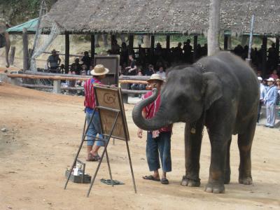 ショーの象さんはおりこうさんで特に絵を描く象さんには関心しましたが、観客のマナーも悪く、