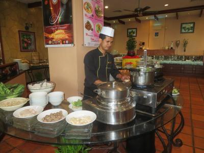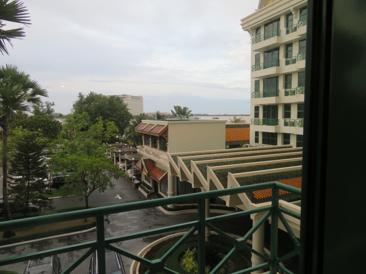 カンボジアに対しての治安とか、イメージがあまり良くなかったので、クチコミで、日系ホテル・日本語が通じる…というのを見て、心強く思って予約しました。…が、「以前は日系だったらしいが、今現在はシンガポール系」だと、オプショナルツアーのガイドさんが言ってました。日本語は全く通じませんでした。そのうえカンボジアは全体的に英語もほぼダメです。フロントに私の超貧しい英語で、お願いやら質問等をしましたが、なにせ先方もあまり変わらない英語力、出来ない者どうしの会話って本当に伝わりません!!!最後の方は私の顔を見ると苦笑いしてました。年の功でめげずにグイグイ攻めて自分なりにいろいろ教えてもらいながら、無事プノンペンの日々を過ごす事が出来ました。ホテルスタッフは本当に笑顔が絶えず、親身に世話をしてくれ感じ良かったです。日系だったころの名残か、朝食ブッフェには本格的な日本の味噌汁・海苔巻き・ガリ・わさび・醤油等がたっぷり用意されていて、食べ物はどんな年配者であっても大丈夫…って感じでした。場所もトンレサップ川に面しており、川沿いの遊歩道が整備されていて、カフェやホテルが立ち並び、ジョギングコースもあり、夜遅くまで観光客で賑わってました。そこからディナークルーズ船の乗り場もありました。その辺り一帯はプノンペンっていう感じがしなくて、どこか外国のリゾートという風でした。滞在中はプールとかジムとか無料でしたが、時間的に余裕が無く、残念ながら今回は利用出来ませんでした。…お部屋はwifiバンバン、テレビは無料でNHKを放送してました。ニュースはほぼ日本と同時位の感じで、本当にびっくりしました。驚いた事に部屋のトイレはペーパーが流せました。3人で利用しましたが、リビング付き・2ベッドルーム・バスタブ付2つのバスルーム、毎日のお部屋掃除に、一日一人1本のミネラルウオーターサービス…プノンペンの物価にすれば高価なのかもしれませんが、日本人にとっては大満足出来ました。一つ不満を言えば、お湯の温度が長続きせず、すぐにさめてしまう事です。あとクーラー効き過ぎ、長そで長パンツで寝ないと体調崩す恐れ大です。…日本人には満足出来るホテルで、ほかの皆さんにお勧めできると思いました。