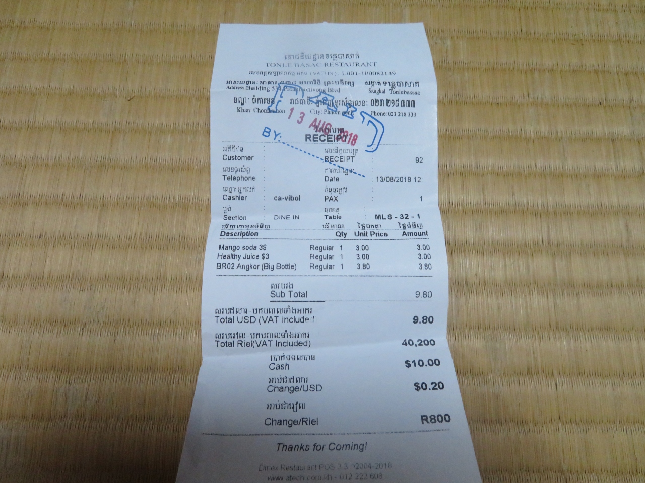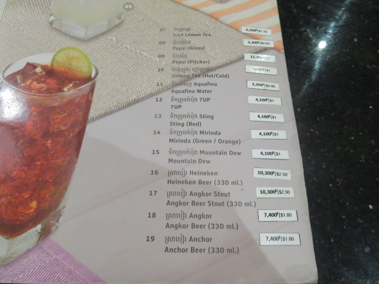 夏休みのお盆時期、特典航空券の空席待ちでシンガポールを希望してたのですが、期待むなしく待ち期限が来てしまい、今日で空席待ちキャンセル…という日に急遽マイレージクラブに電話、とにかく確定できる路線ならどこでもよいのでお願いします…と言って、唯一とれた場所がプノンペンでした。一人当たり税金等で15150円、電話応対でしたのでプラス2160円、合計消費税込みで一人17310円掛かりましたが、無事ビジネスクラス3枚ゲットできたので文句言えません。中距離と短距離の間みたいな感じで、片道約6時間強の搭乗時間でした。初めての路線だったのですが期待して乗り込みました。日系航空会社ビジネスクラスの軽食サービスというのをスッゴク楽しみにしてたのですが…路線のせいだったのか、全く期待外れでちょっとがっかりしました。座席もゆったり出来たのですが、帰りは足がパンパンに浮腫んでしまいました。…しかしながらさすが日系航空会社、乗ったとたんにカンボジアなのに日本にいるような安心感、トイレも清潔でウオシュレット、機内プログラムはすべて日本語吹き替えや日本語訳が付いていて、新作・旧作・ハリウッド映画や韓国ドラマ等見放題!!外国の航空会社ではこうは行きません!!!本数はあっても楽しめるのはごくわずか…がほとんど。次回は長距離路線で乗ってみたい…贅沢なのはわかってますが…そう思いました。