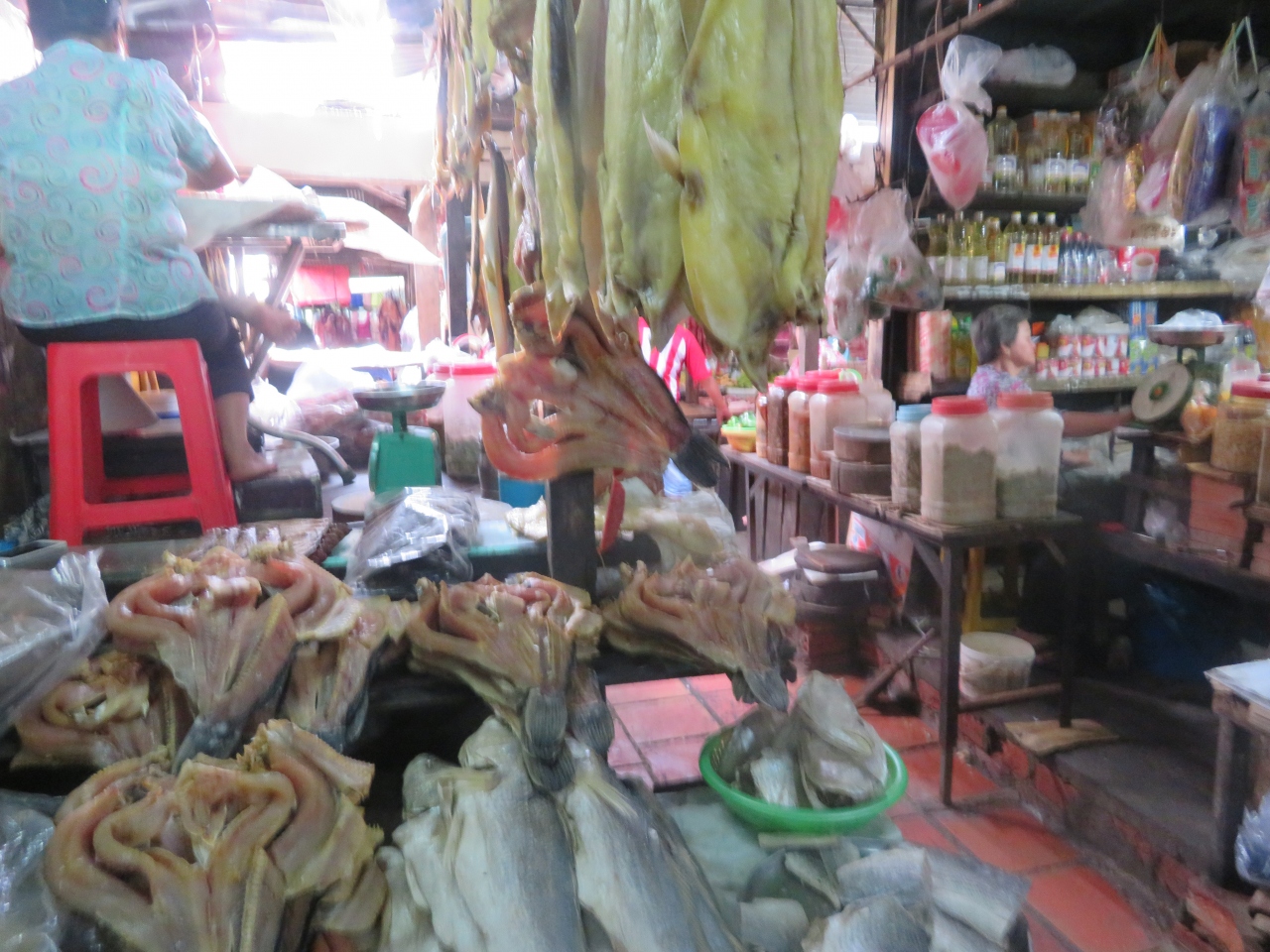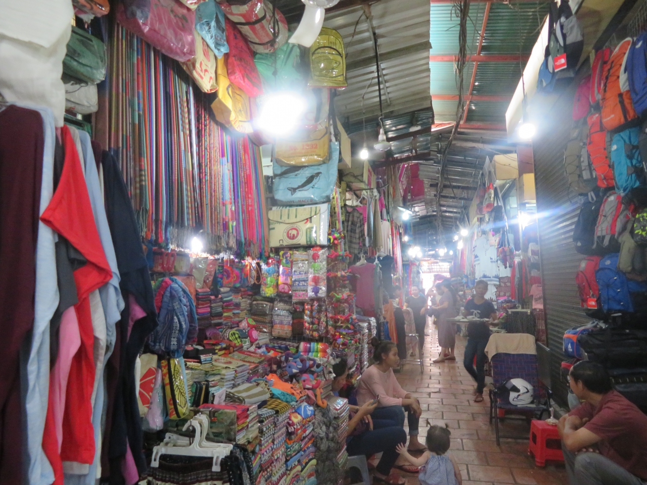 ザ・カンボジア感満載で是非お勧めです。前日オプショナルツアーでセントラルマーケットにいったので、帰国日にはこちらの市場にトゥクトゥクで行ってみました。ガイドさんが市場では必ずカバンは前に持って歩かなければいけない…と言って自分の背負ってたリュックを前でかかえたのでちょっとびっくり。本当に注意しなければ…とつくづく思い、注意を怠りませんでした。カンボジア人はおおらかでニコニコしてるので、多分人間的には良い人たちなのでしょうが、発展途上中かつ外国なので、気を付けましょう。