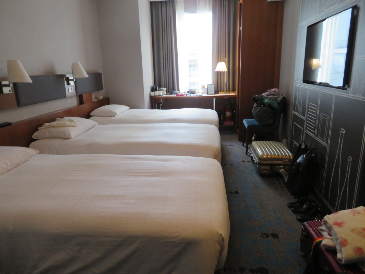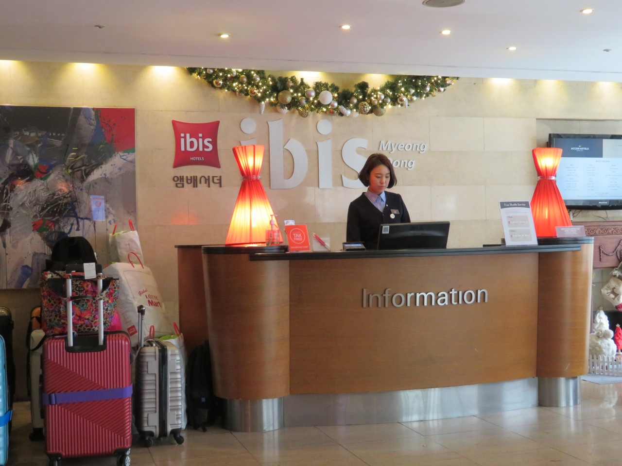 19Fにフロントが有り、10F~18Fが客室フロア。すべての客室がシャワーのみでバスタブが無い代わりに、男女大浴場がAM9時~PM11時まで使えます。ただ夜11時まで…というのがちょっと微妙。今の韓国旅行って個人手配やグループ旅行が主だと思いますので、午後11時までの利用時間というのはハッキリ言って利用しづらいと思います。せめて夜中1時位までは延長して欲しい…。スタッフは明るく親切、朝食ブッフェも大満足出来ました。明洞に立地するホテルなので夜遅くまで屋台やショッピング楽しめます。ロッテ免税店はホテルの真ん前、マッサージ屋さんもホテル1Fで繋がった商業エリアにあり、真夜中でも外に出る事なく行き来できます。宿泊したお部屋はシングル3台の清潔なトリプルルーム。コンパクトな作りにはなってますが、泊まるだけなので問題無し。日本人宿泊客もとても多く、誰にでもお勧めできる…と思いました。