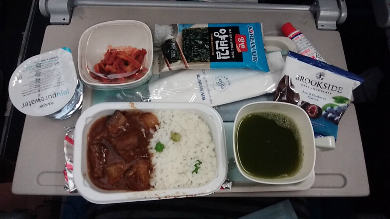 近頃LCCに押されっぱなし…というクチコミが多い日本-韓国線。今回は、往路・大韓航空KE704便・14:00分成田発-16:50分仁川着。復路・KE001便・17:20分仁川発-19:40分成田着、エコノミークラスを利用しました。時間帯が良かったせいか、昔ながらのサービスが残っていると感じました。アルコール・ソフトドリンクも食事もちゃんとありました。帰りの便、ほとんど免税品買う人いないと思いますが、ワゴンで一生懸命押してました。やっぱりフルサービスの航空会社、いいな~って改めて思いました