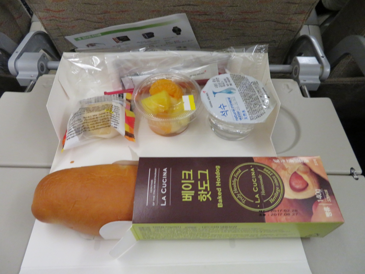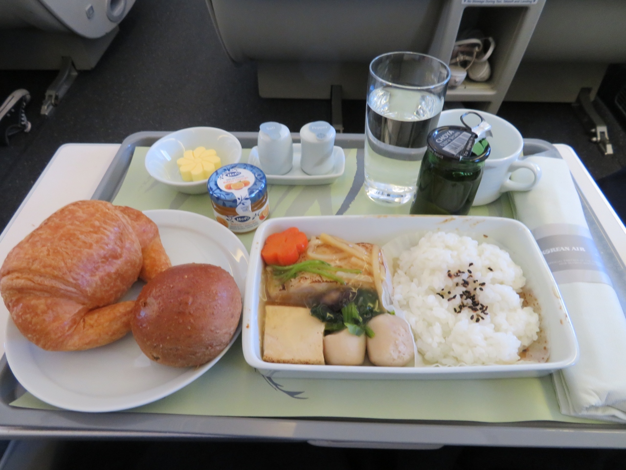 日系航空会社に比べて、近距離路線にもかかわらず簡単ミール等ではあるが、機内食が提供されるのは素晴らしい…というクチコミがたくさん有ったので、その点には共感しました。味付も往復、日本人の口に合う美味しいものでした。アルコールのサービスは無くソフトドリンクも食後に一回、緑茶かコーヒーのみ。FAさんも笑顔では有りましたが少し近寄り難い雰囲気で、あまり印象は良くなかったです。足元はエコノミークラスという割には結構余裕があり、まあまあの感じ。映画も日本語対応したものもたくさんありましたが、韓国は本当にアッと言う間に着いてしまったので、見られなかったのは残念でした。良も無く、不可も無い…そんな印象の航空会社でした。