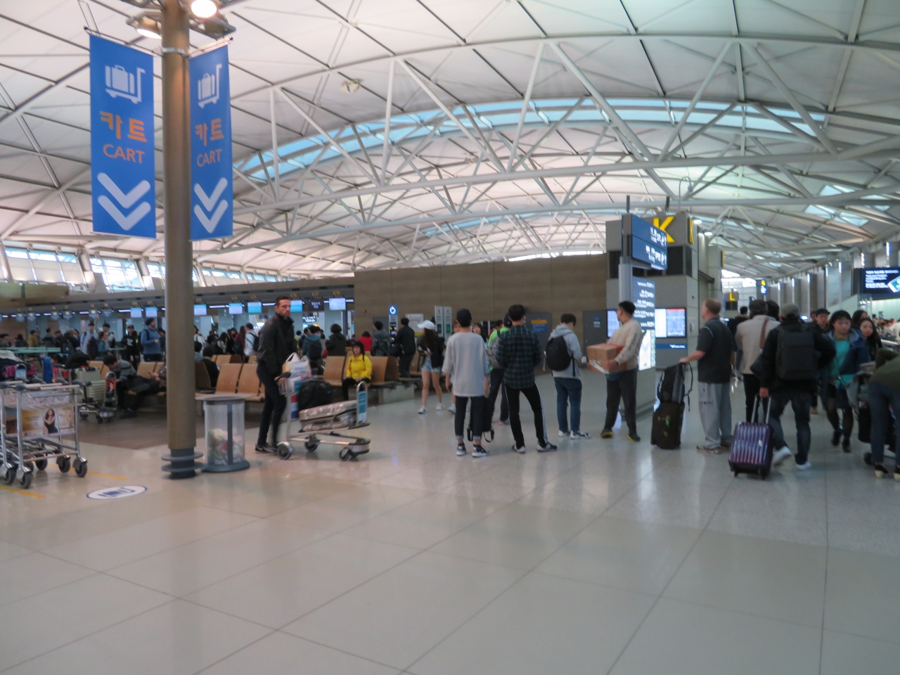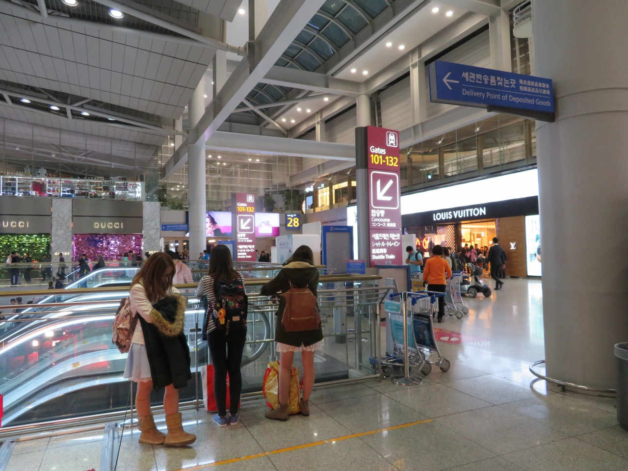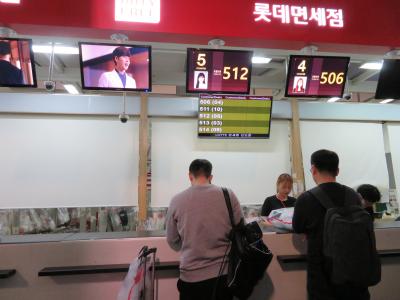 無料WIFIはOKだし(ただし私のスマホはらくらくホンだったせいかWIFIが入って来ず、とても残念では有りましたが…娘にピッタリくっついて娘のスマホを一緒に使ってました)、規模が大き過ぎていくら時間があっても足りません。市内のロッテ免税店で買い物をした品物は、空港受け取りだったのですが、指定された29G側の受渡場所というのが分かりにくく、2~3回尋ねながらやっと辿り着けました。ゲート案内が出てる3Fでは無く、一つ上の4階にあったのです。免税天国の韓国だけあって受け取りを待つ旅行客でごった返してました。時間に余裕が無いと飛行機の搭乗に間に合わない位のいきおいでした。時間に余裕をもってウロウロするには最高の場所だと思いました。
