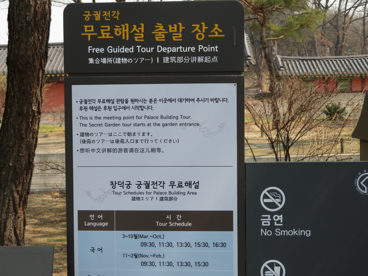 12時半位に出発の、無料日本語ツアーに参加しました。とても丁寧に1時間くらいかけてガイドして頂き満足出来ました。昔の王宮の中を見て回れるなんて、本当に素晴らしい体験が出来ました。庭園も有名だそうですが、今回時間が無くて回れませんでした。…日本から戦前、韓国の王室に嫁いだ李方子さんが、亡くなるまで住まわれていた奥の宮殿も見学しました。チャングムでの撮影場所だった所も、「あっ、この場所覚えてる」という感じで、大変楽しく、行ってよかったと思いました。市内から近いですし、是非お勧めの場所です。