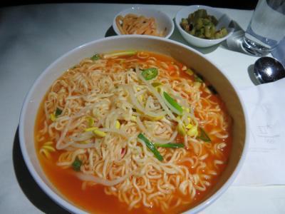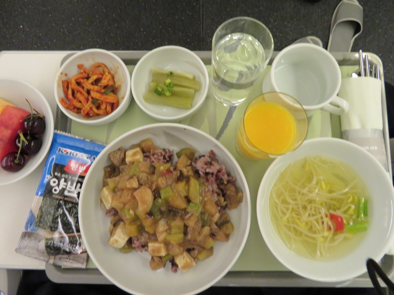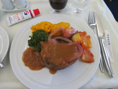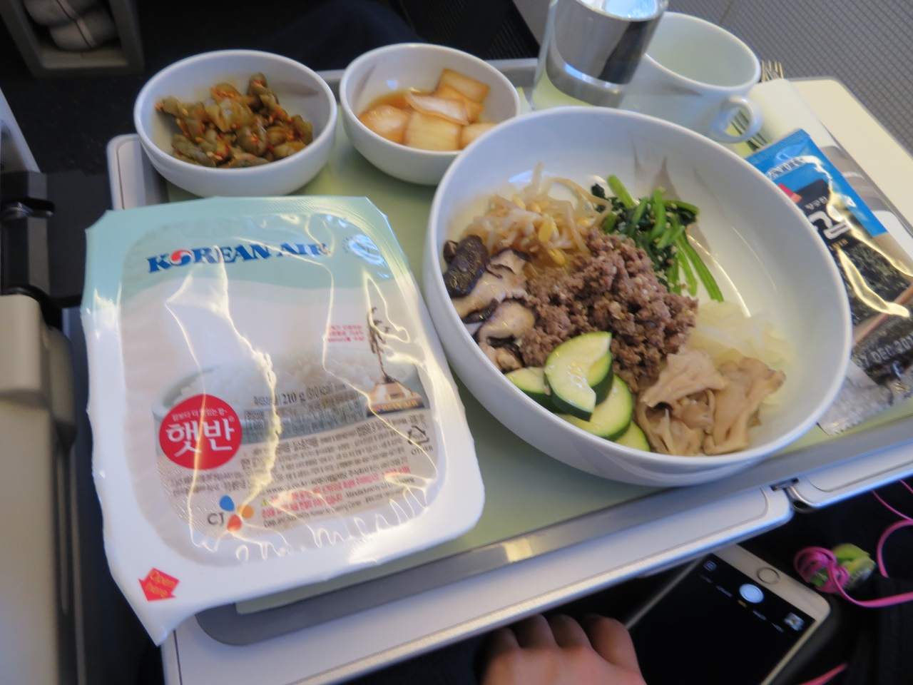 大韓航空、憧れのエアバス380に乗ることが出来ました。ビジネスクラスだったのですごく快適にロサンゼルス往復出来ました。…が日本の航空会社へのあこがれが益々強まった経験ではありました。経由便だったので往復メインの食事が4回、軽食2回食べました。初めビビンバに感激したのに、その内同じような食事内容に飽きてしまって、旅行最終日に成田まで搭乗したときの夕食は、ほとんど食べられませんでした。率直に今は当分ビビンバは当分食べたくない…という感じです。