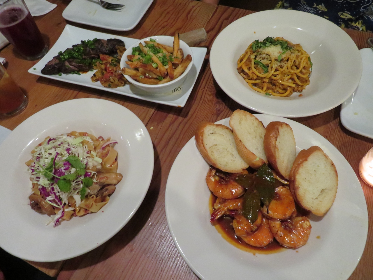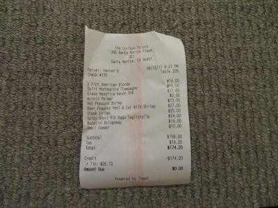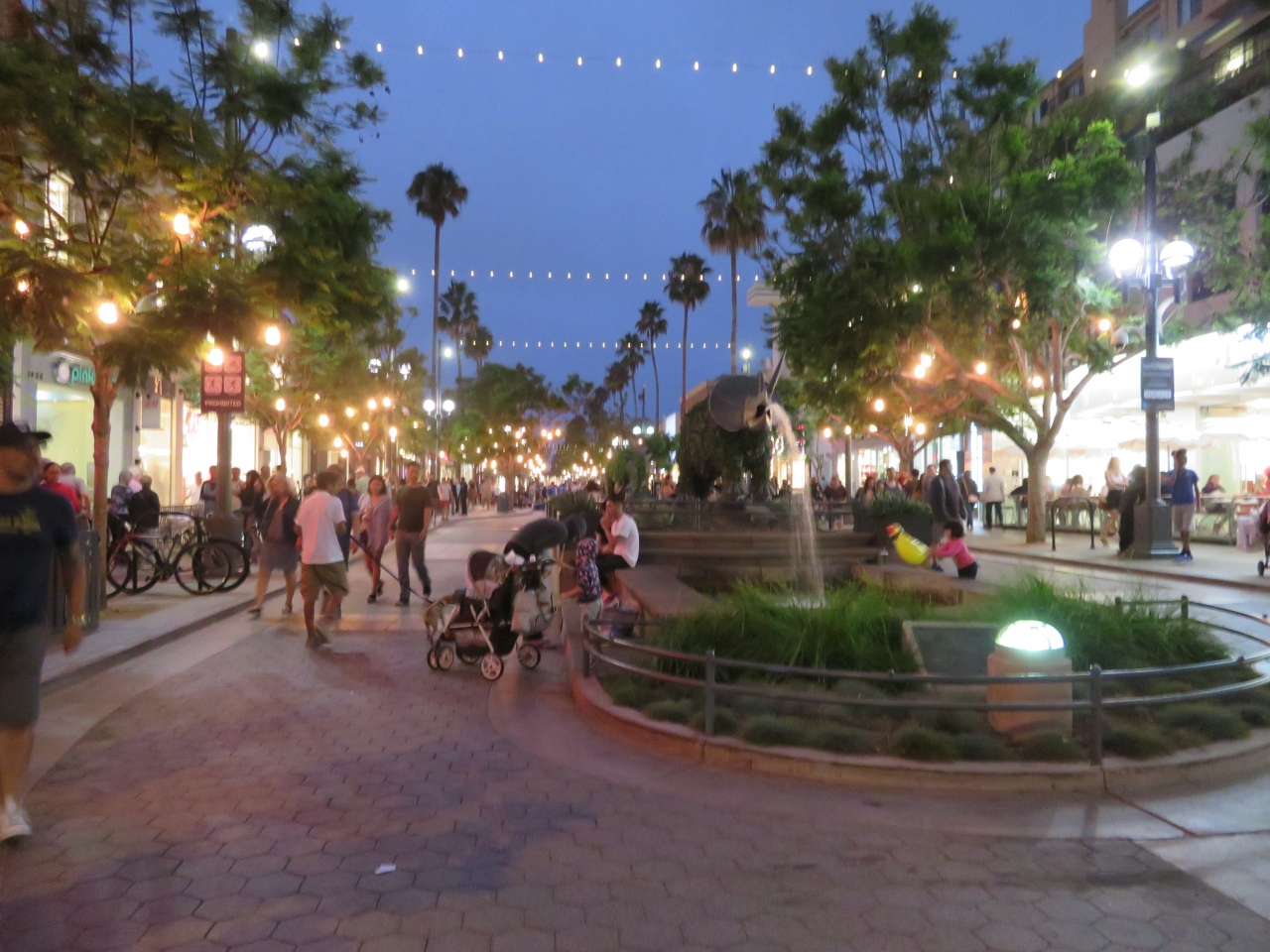 サンタモニカに着いた夜ショッピングを兼ねて出かけました。ブランド品やデパートや専門店やたくさんお店があり、楽しめました。夕食は3FのCuriousu palateというレストランで頂きました。英語のみのメニューでしたが、なんとか注文し、おおいに楽しみました。