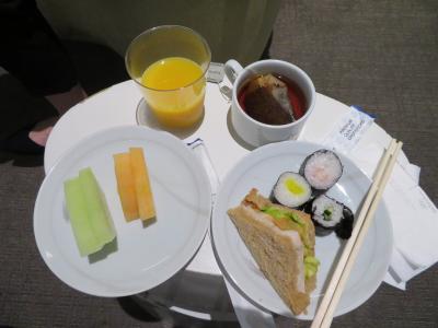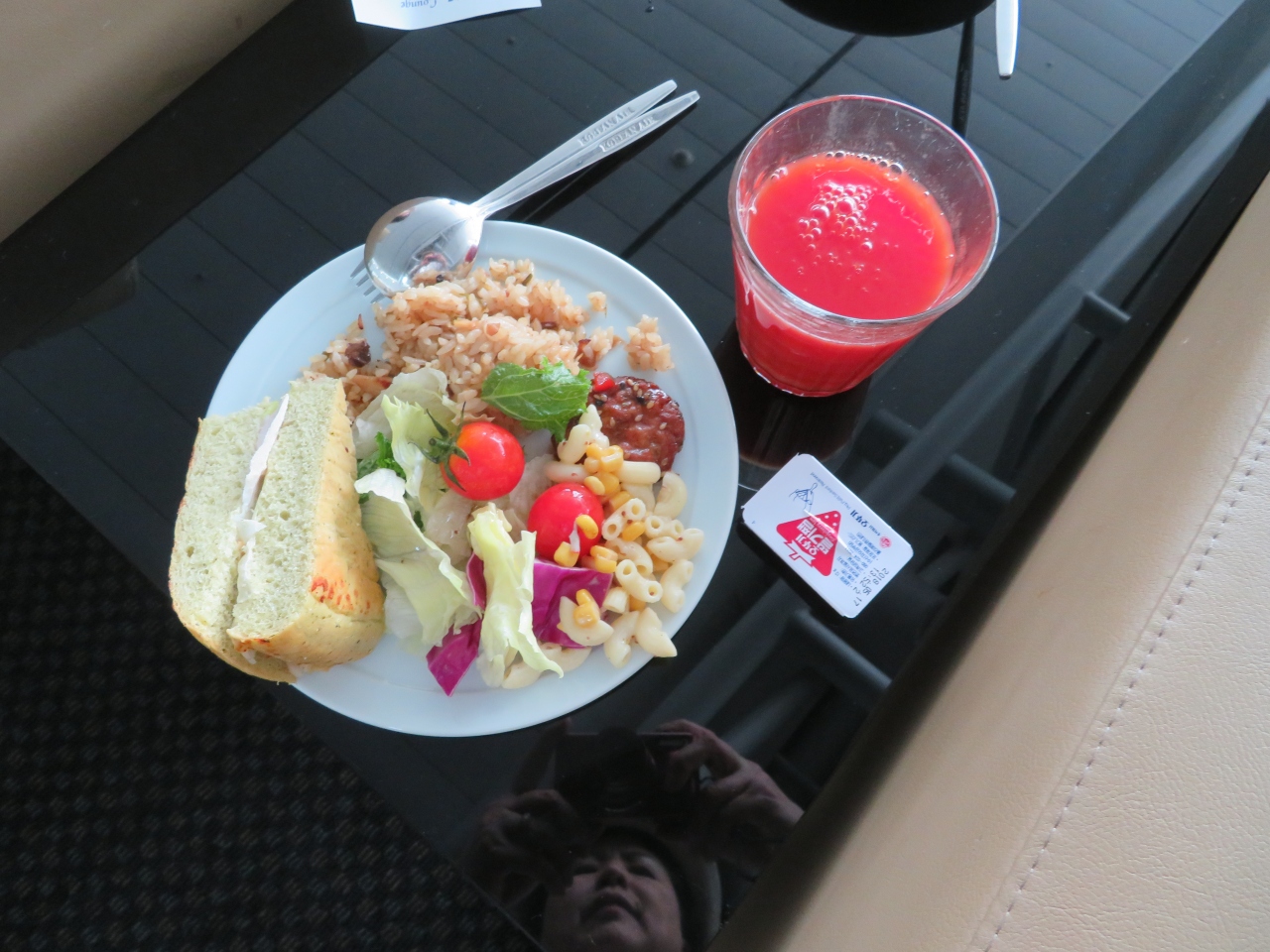- 近距離国際路線ではありますが、簡易ミールとはいえ機内食があるのはうれしいです。アルコールサービスが無くてちょっと残念