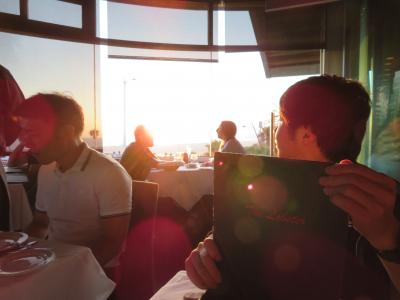 メニューは英語で日本語無し。ついつい多めに注文してしまい、大幅に予算オーバー。窓越しのサンセットは素晴らしく、お料理もおいしかったです。スタッフは愛想良く、気持ちよく家族4人、食事が出来ました。日本からHISを通して夜7時に予約してあったので、タイミングよく8月の夕日も見る事が出来ました。予約の無い人は混んでて入れませんでした。如何にも海外旅行中の食事って感じで大変満足出来ました。