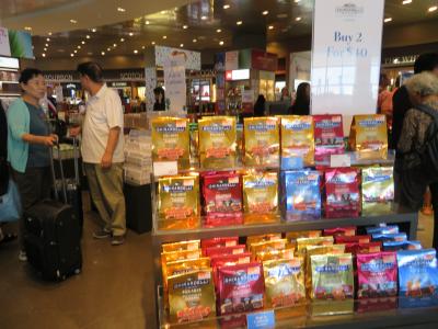 あまり広くは無く、飛行機を待つ間、ぶらりとショッピングするくらいの感じです。化粧品のパレットを3つ買ったのですが、搭乗ゲートでの受け取りで、その場ではもらえませんでした。その後、もう一つ追加で買おうとしたのですが、自分の搭乗する飛行機にはもう間に合わないということで、買う事が出来ませんでした。欲しい物があったら時間も気にしないといけない、空港の免税店でした。