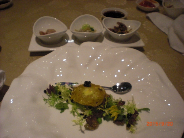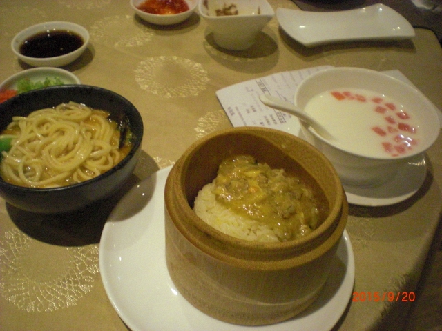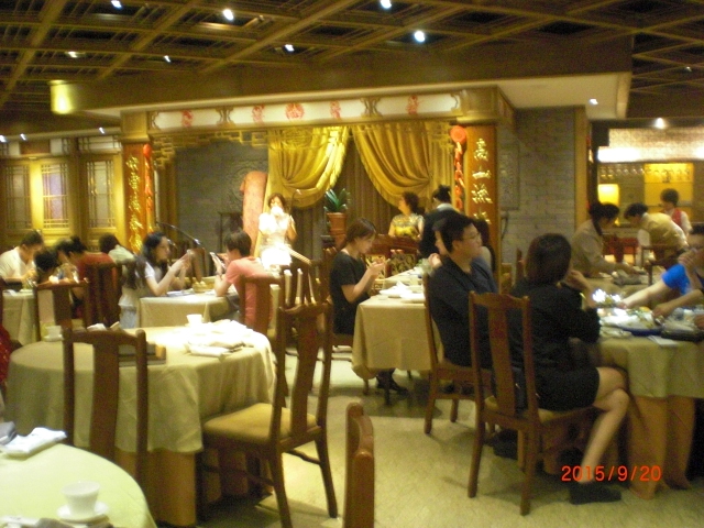 ツアーに組み込まれてたので、だいたいの値段です。夜には生演奏もあるみたいですが、私達は食後予定があったので聞く事は出来ませんでした。メニューをみたら一品一品がものすごく高いくてビックリしました。自分の好みとしては日本のタラバガニの方が好きですが、上海蟹もとても美味しかったです。以外と小振りなのには驚きました。