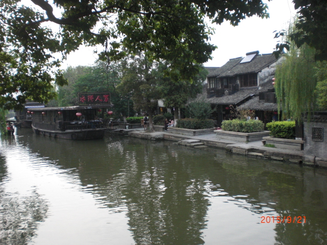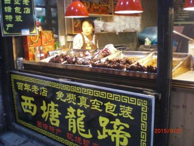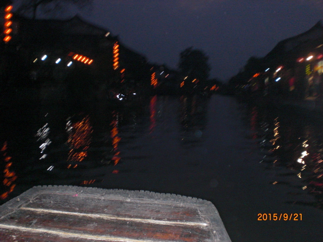 江南水郷古墳の代表格、上海市内から車で1時間半位かかりました。西塘の夜景を見るツアーだった為、午後3時にホテルを出発しました。水路沿いに白壁の民家が連なり、そのほとんどが明清時代の建物。古橋も沢山残っており、その内11脚は宋時代の物で今も現役で使われているとの事、驚きです。狭い路地にびっしりと食べ物屋さんや雑貨やさんが並んでいて、歩いてるだけでテンションも上がります。暗くなるとそこに赤い提灯がともされ、まるで別世界にいるよう。赤い灯が幻想的に揺れる中、小舟に乗って水路をゆっくりと30分位かけて往復しました(乗船料1人120元、約2400円)。西塘に行ったら、ちょっと高いですが、絶対小舟乗船はお勧めです。