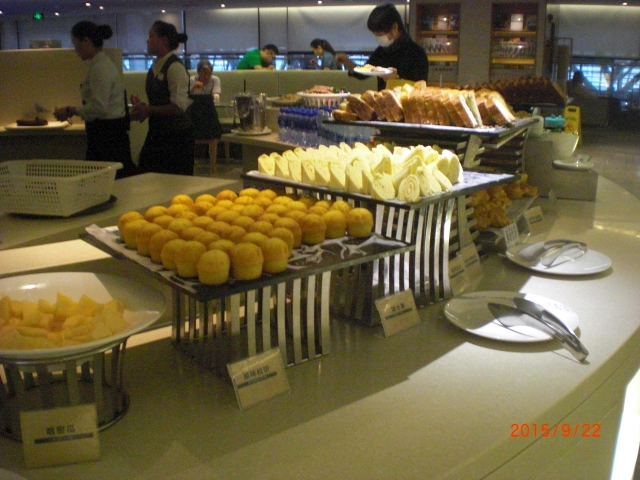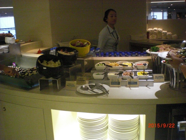 上海浦東国際空港でのANAビジネスクラスのラウンジは、中国国際航空(AIR CHINA)?71ラウンジを指定されました。さすがAIR CHINAの本拠地ラウンジらしく、広々としていてとても清潔で感激しました。一階部分はビジネス用らしく、二階部分は飲食用エリアです。何でも揃ってるので、味覚に関しては人それぞれですから、合う・合わないは別にして、十分だと思いました。ただ中国という地なで、小籠包などそういった食べ物が一つも見当たらないのが残念でした。本場物を最後に食べたかった…です。