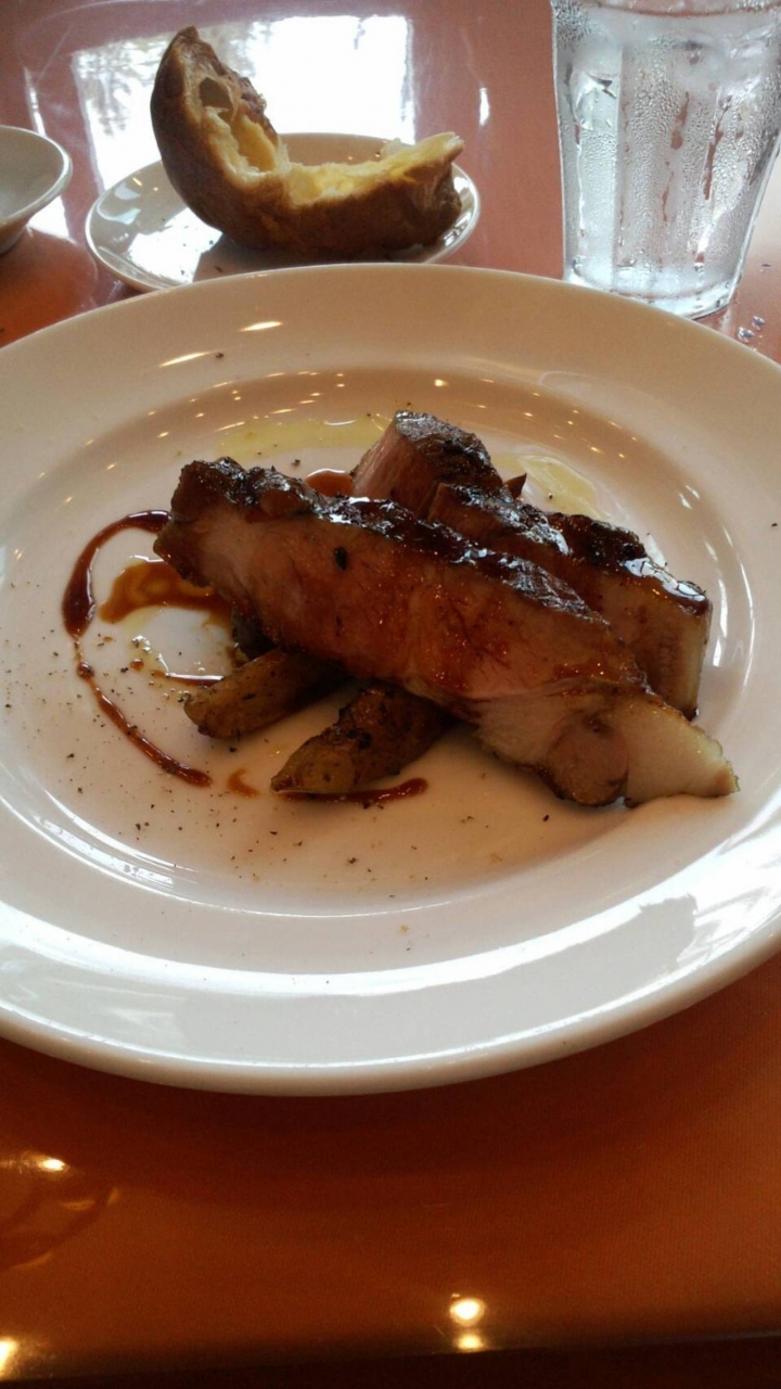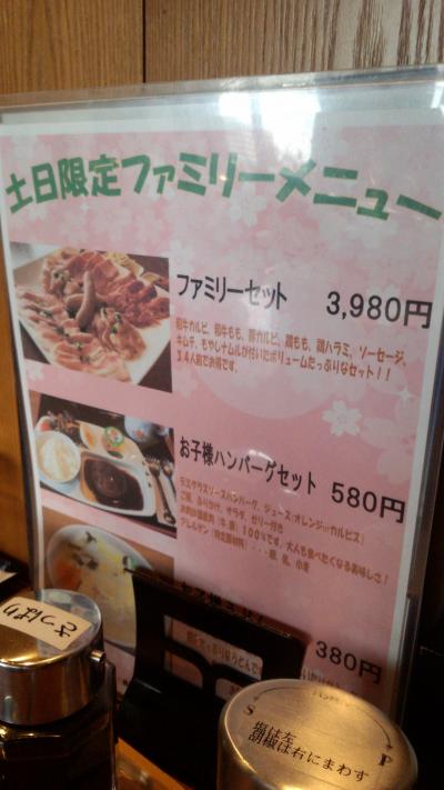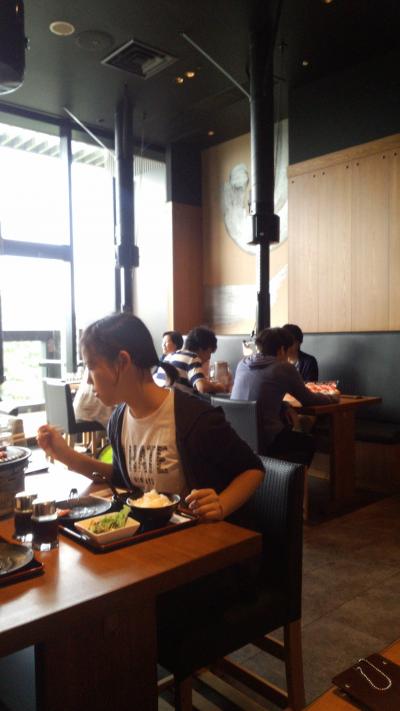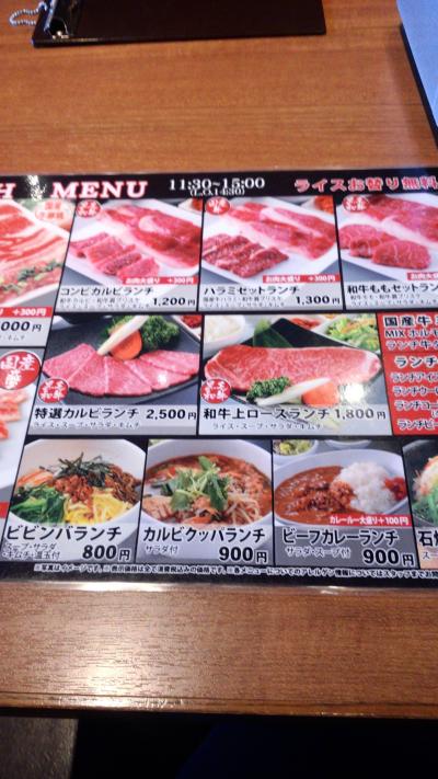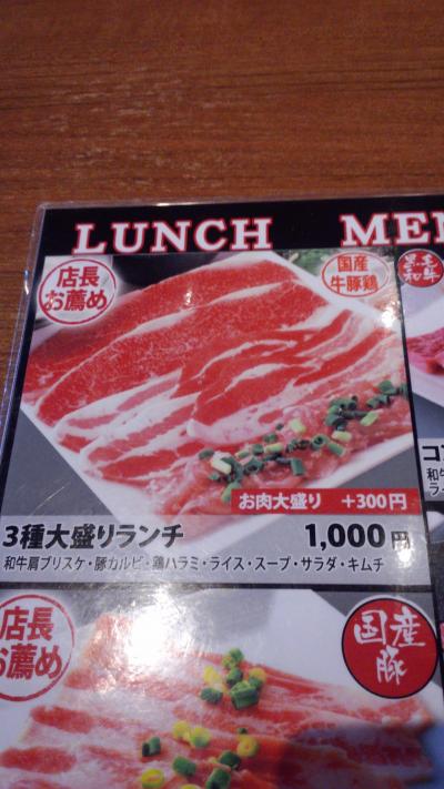 サクラテラスの三階にあり、ちょっと敷居が高そうなのですが、ランチメニューはお手頃価格が揃っていて意外と気軽に楽しめます。隣の席は女子高生の2人組で、美味しそうに食べてました。今日は日曜日ですが、ランチメニューが楽しめ、テーブル上の広告メニューには、土日限定サービスとして、一皿3~4人前の肉盛り合わせ…というのもありました。こちらは夜でもOKみたいです。ランチメニューでも国産牛メニューが多く、私は肉多め国産牛の1100円のランチを食べました。結構気軽に利用出来るお店だったので、嬉しくなってしまいました。お酒の値段もそんなに高くなさそうだったので、夜にも利用できそうかな…という気持ちになりました。お肉はさすがに柔らかくって、ランチでも十分満足できました。少し残念だったのはセットの中にデザートと飲み物が付いて無かった事です。