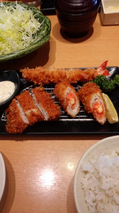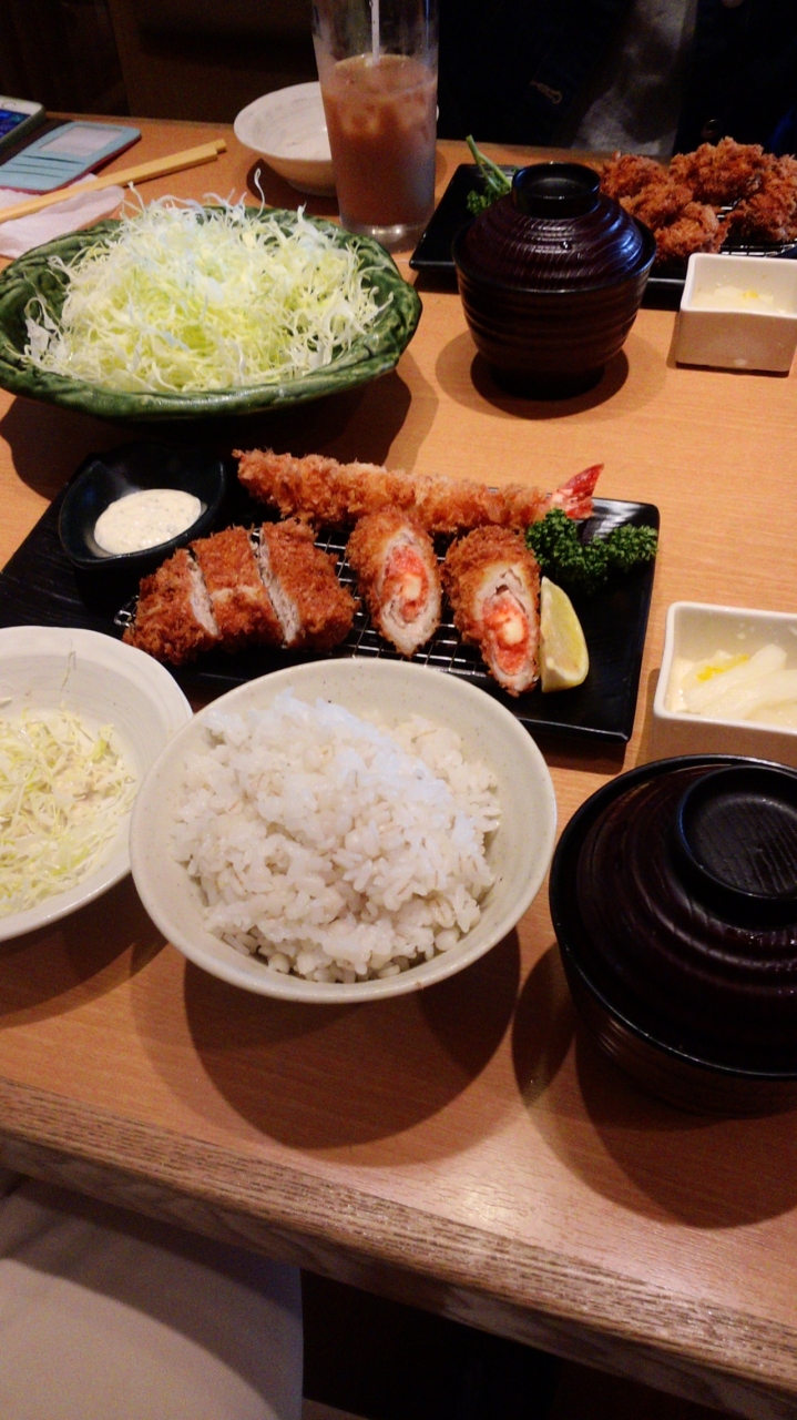 やはりカツが食べたい時は期待を裏切りません。ヒレ・海老・明太子の盛り合わせをチョイス。シャキシャキキャベツ、お代わり自由がうれしいサービスです。1480円でお値段も手ごろ、かつが食べたい時には、お勧めです。