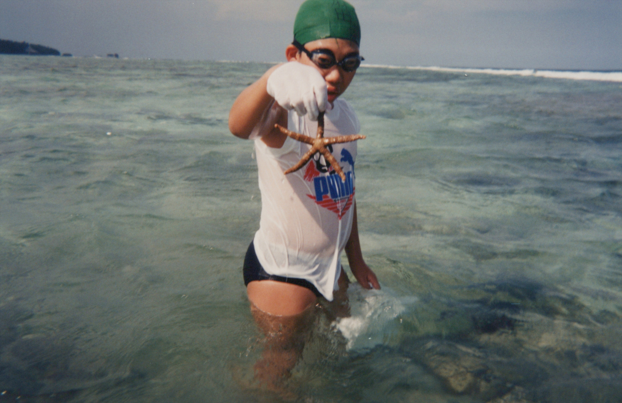 我々の訪問時はまだJALが経営するコテッジが海辺に十数軒あり、島の周りのサンゴ礁で囲まれた中には多くの熱帯魚が泳ぎ、足が付くサンゴ礁の内海内で子供もシュノーケルができた。息子はマングローブの根の所でシャコ貝を見つけたり、ヒトデを取って楽しんだ。今は