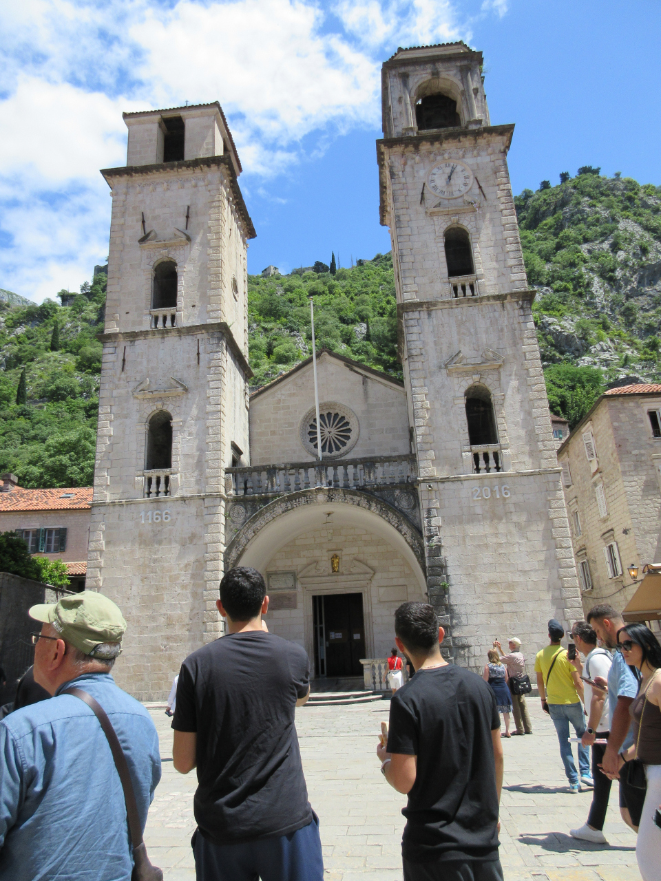 ツアー旅行の現地最終日はクロアチアからモンテネグロへ国境を越えていき、コトルの手前でコトルの街を一望できるレストランへ行き、コトルの街を見たうえで、城壁の門を潜りコトルの街へ入った。そして、コトルの街を見学した。コトルの小さい街に教会が5つ以上あった。その後バスでロープウエイ乗り場に移動し、ロープウエイからもコトルの街を見物した。