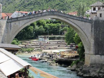 ツアー旅行の5日目にクロアチアからボスニア・ヘルツェゴビナへ国境を越えて(国境を越え出国&入国手続きに約30分時間が掛かった)、モスタルへ行きスタリモストという世界遺産の橋を見物。ネレトバ川にかかるこの世界遺産の橋(大理石の橋で滑りやすい)を渡り、対岸からもスタリモスト橋の写真を撮った。この橋を見るだけの為に、Splitからモスタルへ3時間5分(含む入出国)とモスタルからドブロヴニクへ3時間15分掛ったが、見る価値のある世界遺産であった。 Yorky