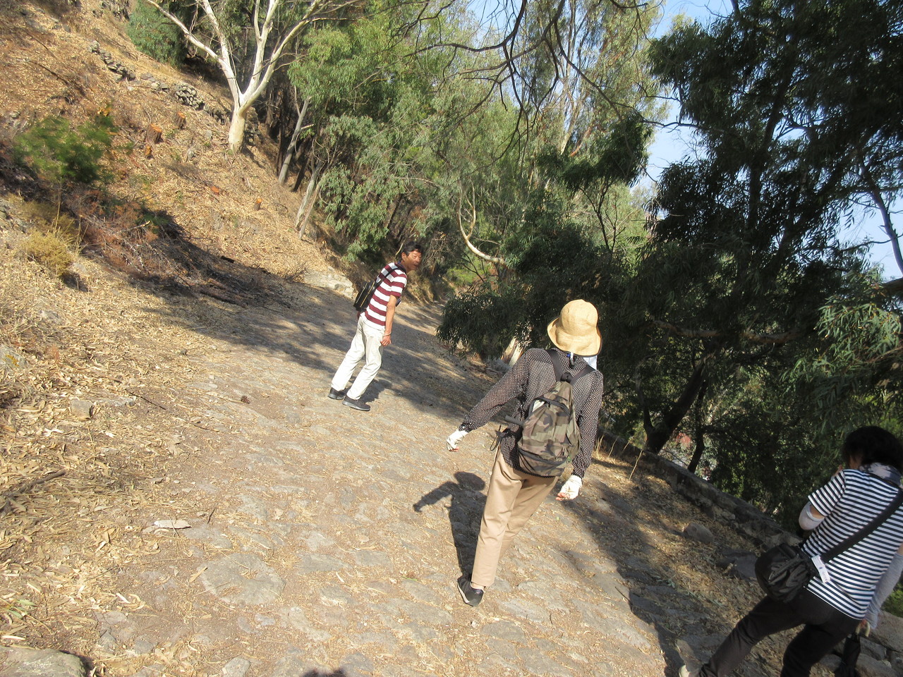 下り坂はタクシーが凄いスピードで走るバス道を避け、近道を降りたが石を敷いた道の