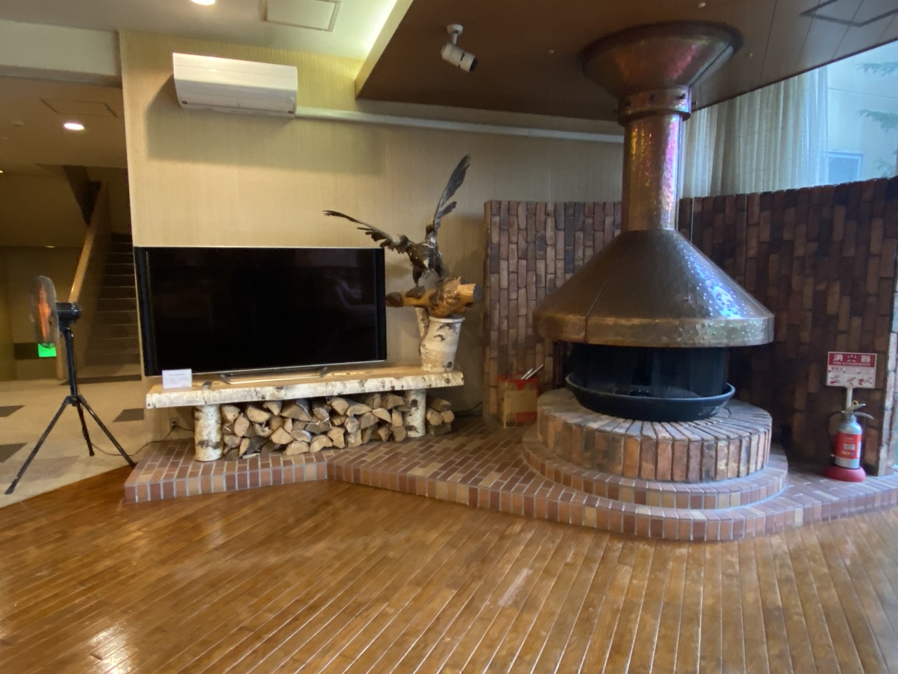 内部はふんだんに木が使われていて山小屋風。