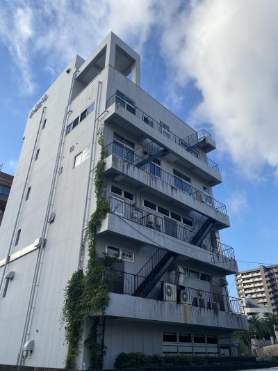 外観は古いオフィスビルで、一見ホテルに見えない。事実1、2階は事務所で3、4階がホテル。駐車場が裏側にあり、若干分かりにくい。