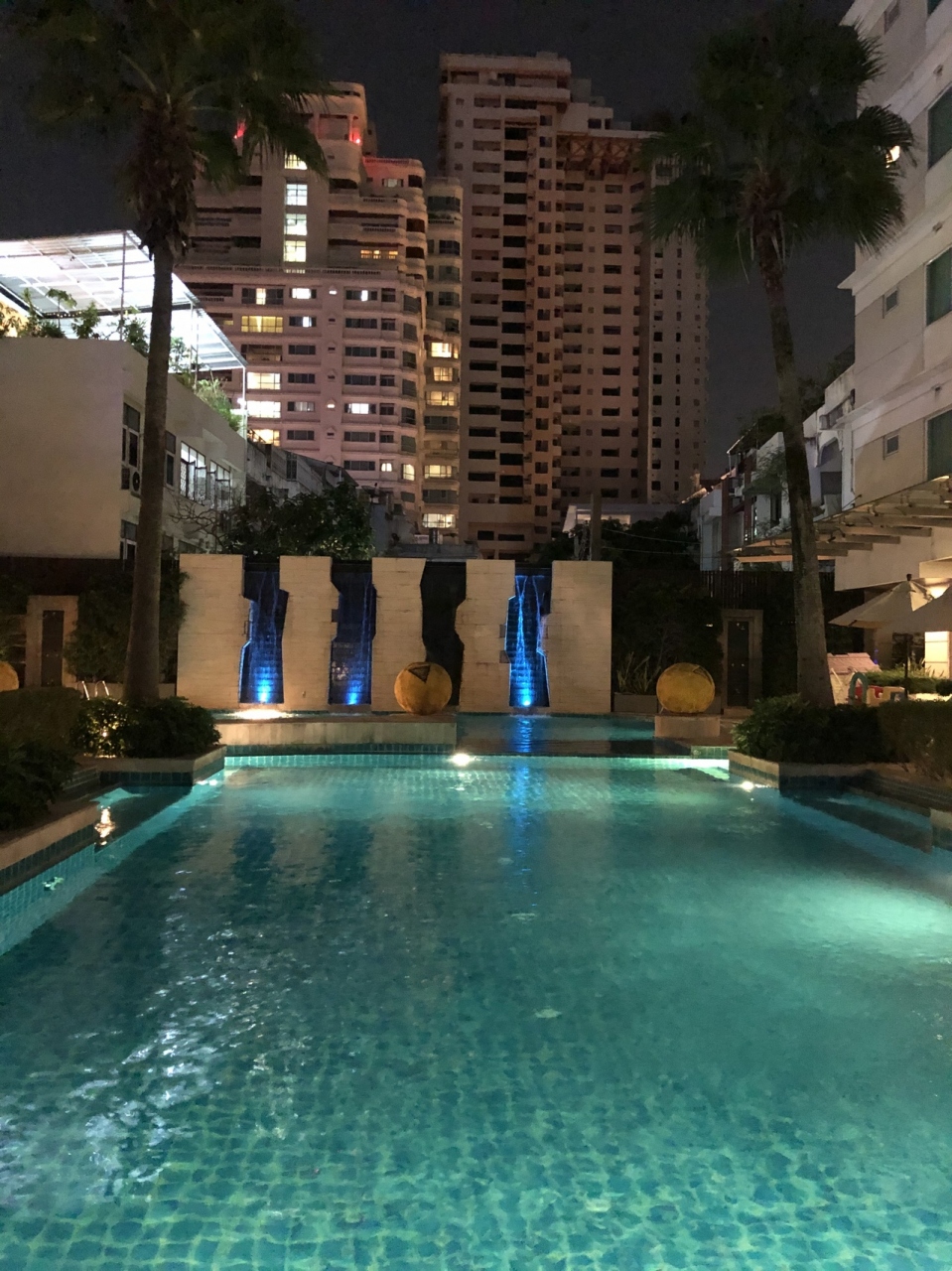 立地としては、スクンビット・アソーク駅まで15分弱で観光には便利かもしれないが、近くにコンビニ・スーパー、安い飲食店や屋台がないので、生活するには不便。- 旅行時期