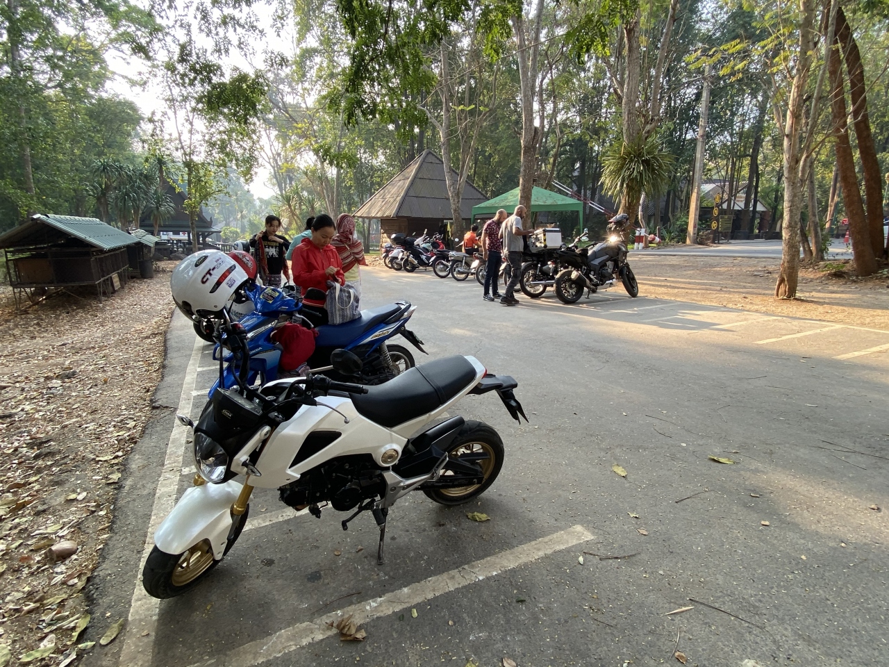 7時に出発し、ゲートで入場料300B+バイク代20Bを払い8時45分に到着。