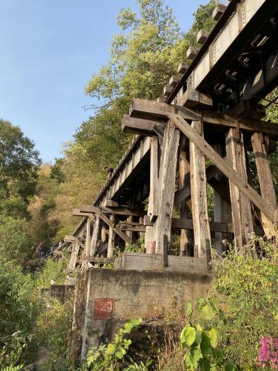 列車を見送り、クラサエ橋駅へ戻る際は、途中から下を歩き木造の橋脚を確認したが、基礎はコンクリート、橋桁は鉄骨なのに橋脚だけ木造だったのか疑問が残った。- 旅行時期