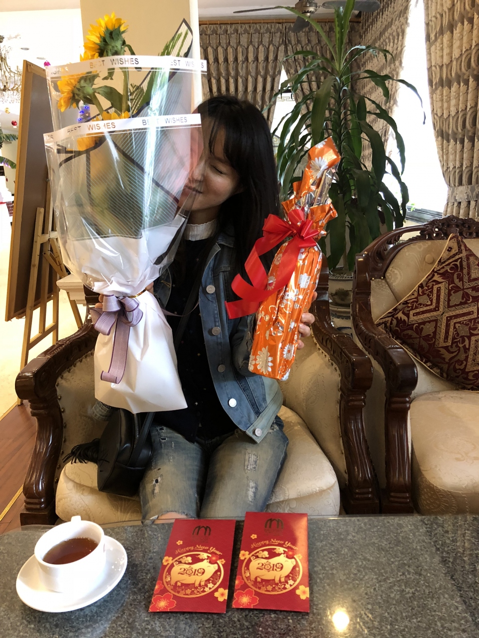 アーリーチェックインまでして頂き、なぜかウェルカム花束とお年玉まで頂いた。