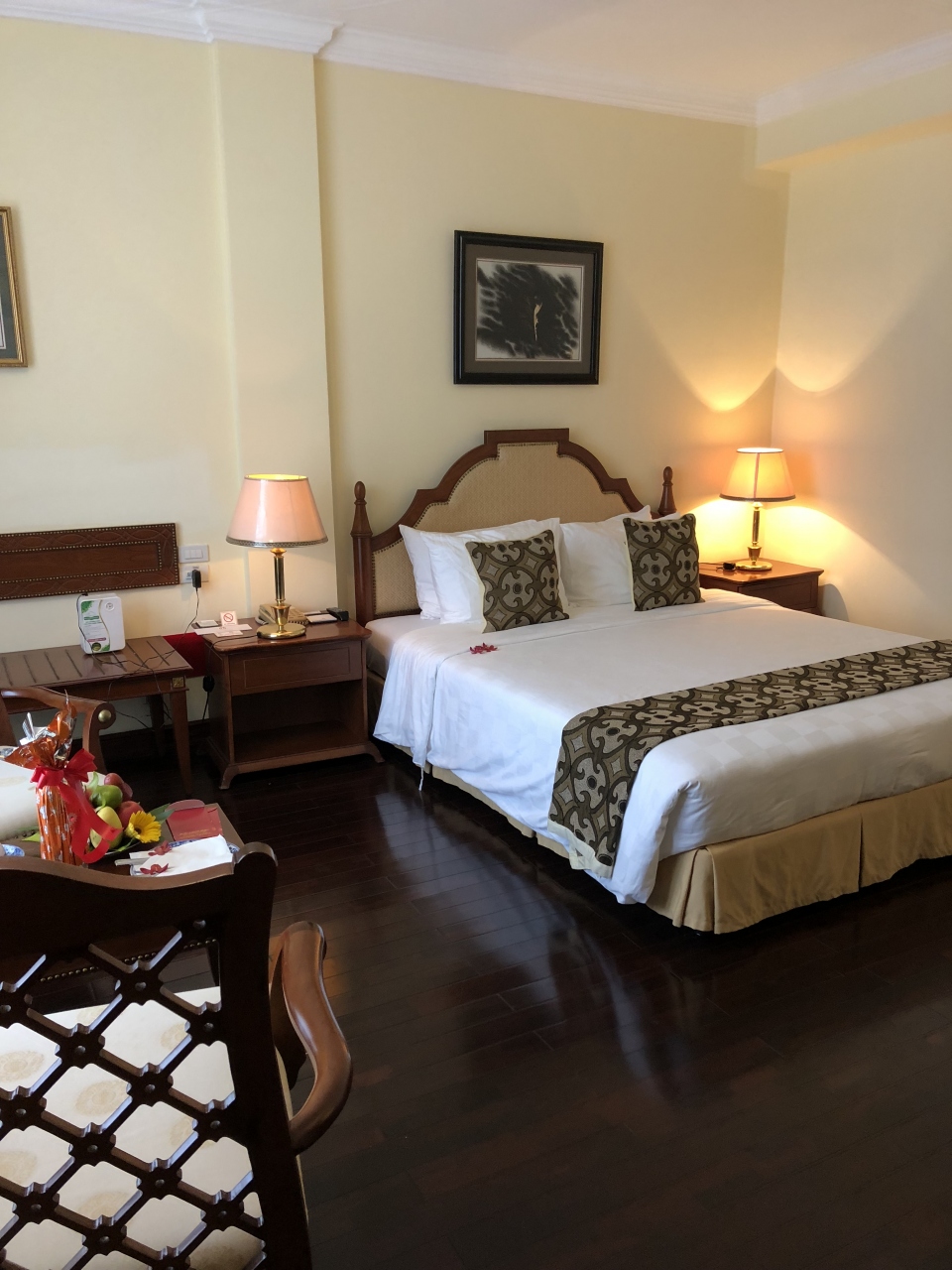 10時にホテルに着き、荷物だけでもと思ったら快くアーリーチェックインさせて頂いた上、元旦だったから、花束とワインとお年玉まで頂いた。