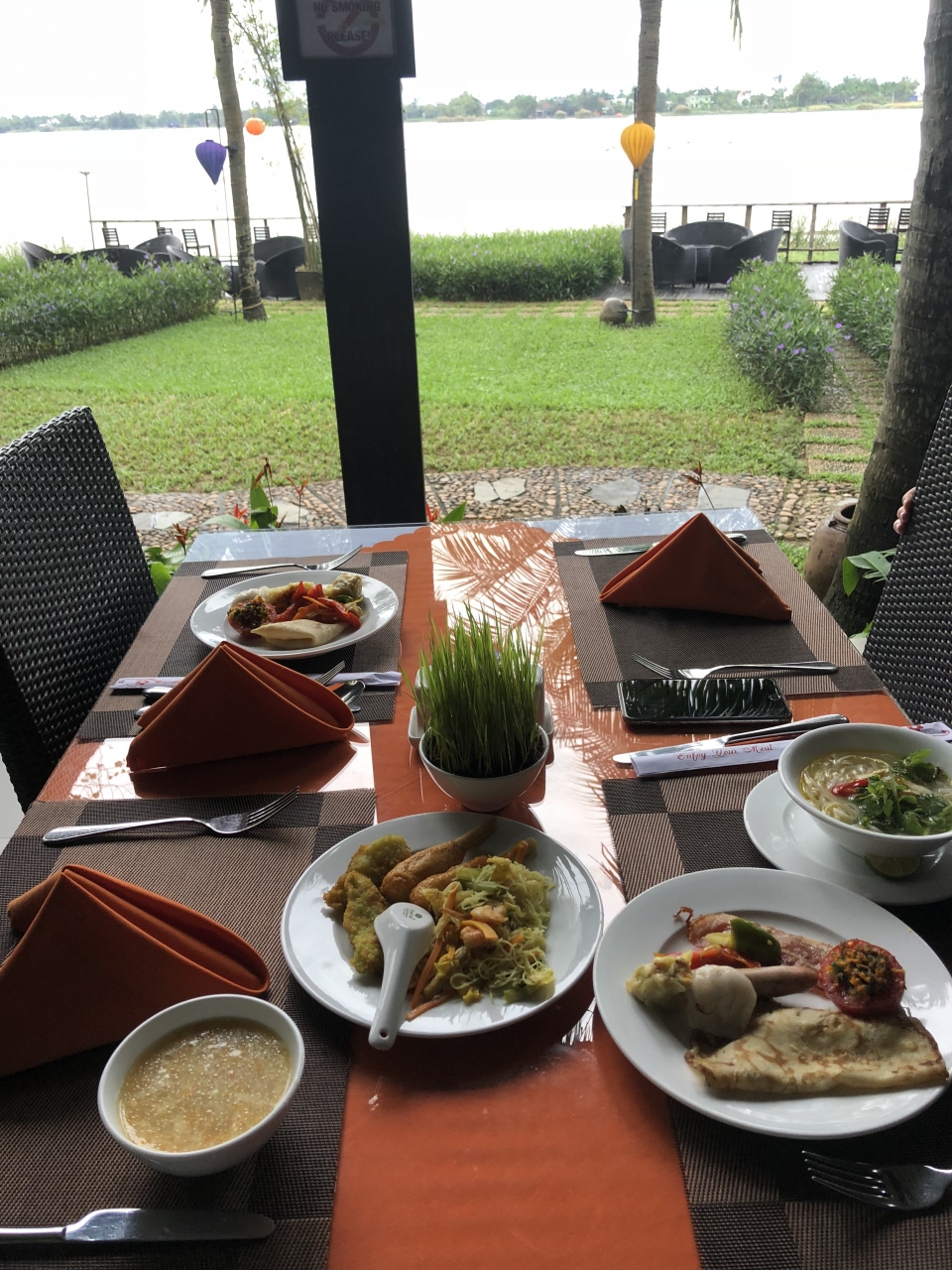 生憎の天気だったので、中庭で朝食は食べれなかったのが残念だった。- 旅行時期