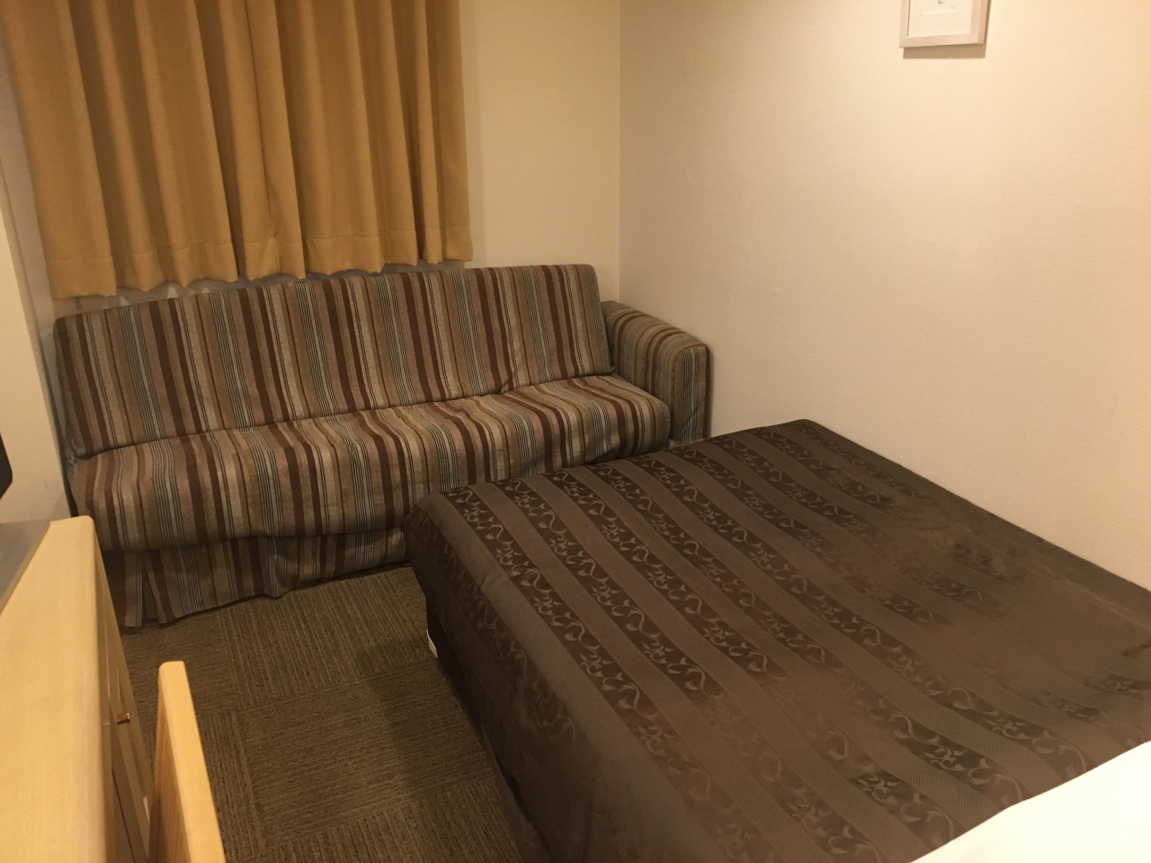 シングルルームをツインユースなので、狭い事は予想していたが、予想を上回る狭さだった。