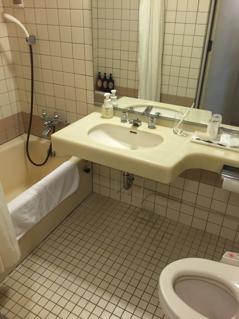 部屋は20平米ということで、一般的なビジネスホテルより若干広いが、水廻りは若干古さを感じた。