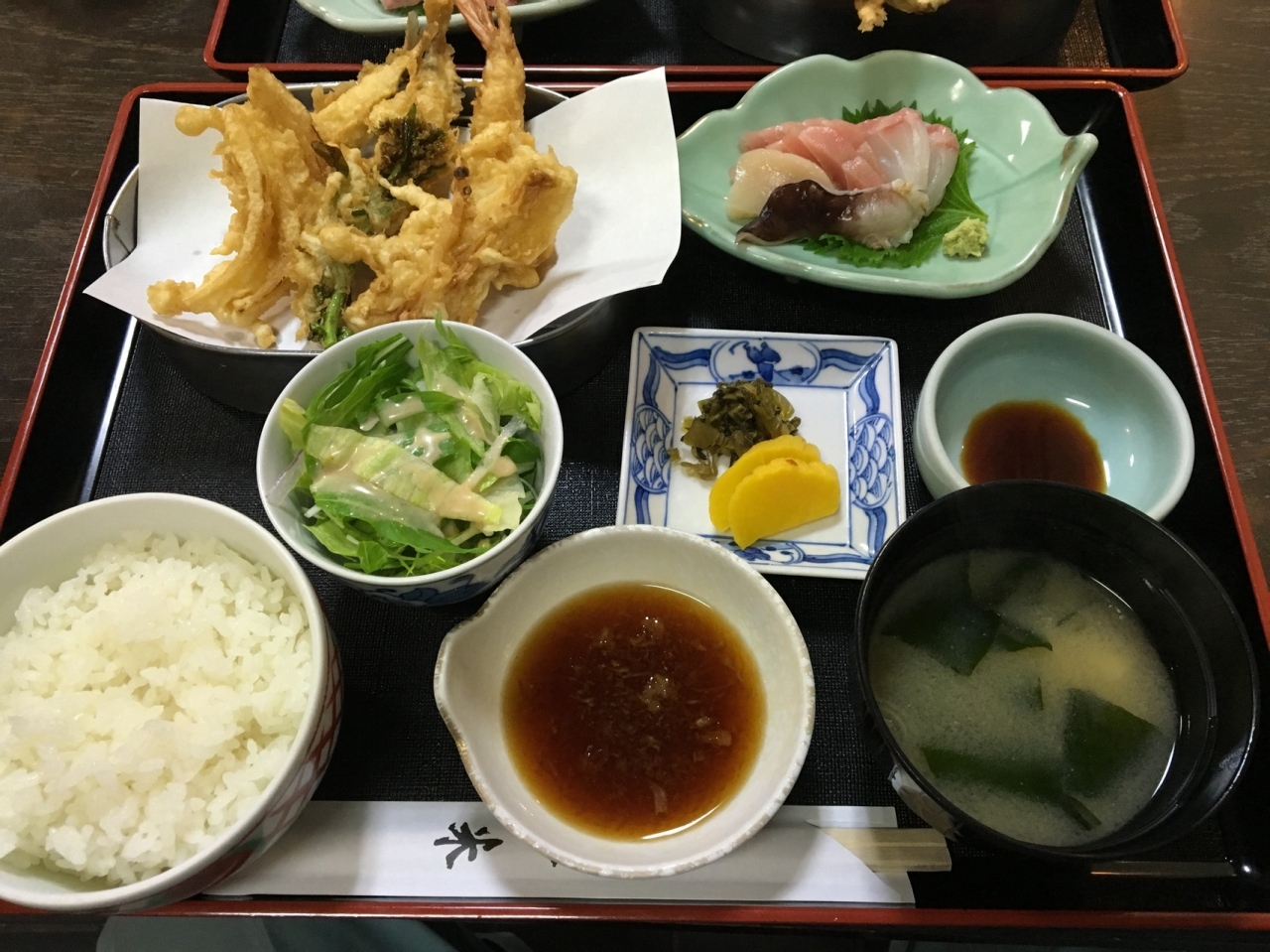 ランチ限定天ぷら刺身定食1000円とあったので入店。ランチ定食は品数もあり、美味しかった。