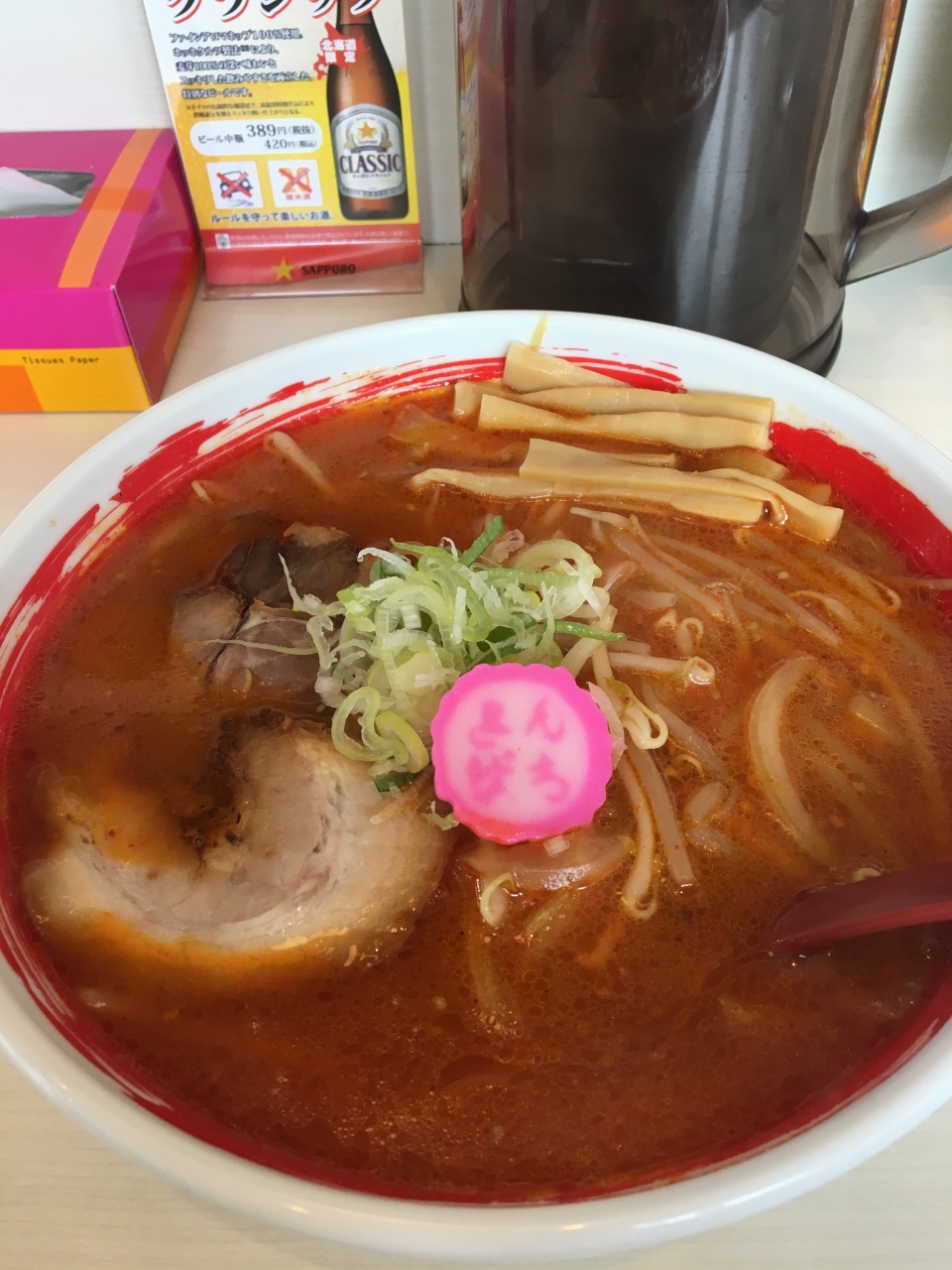 いつもは食べない、ピリ辛味噌ラーメンを選択したが、残念ながら失敗だった。- 旅行時期