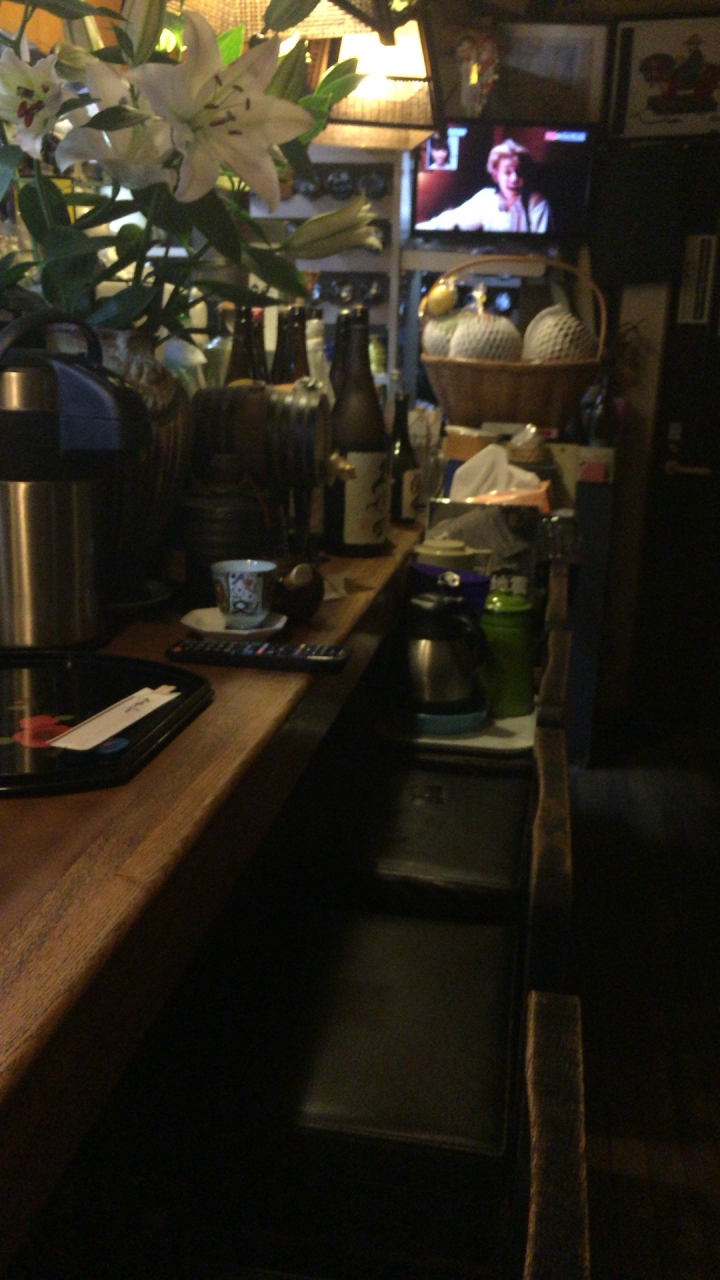 カウンターに座り常連さんと話をしながら酒を飲む。